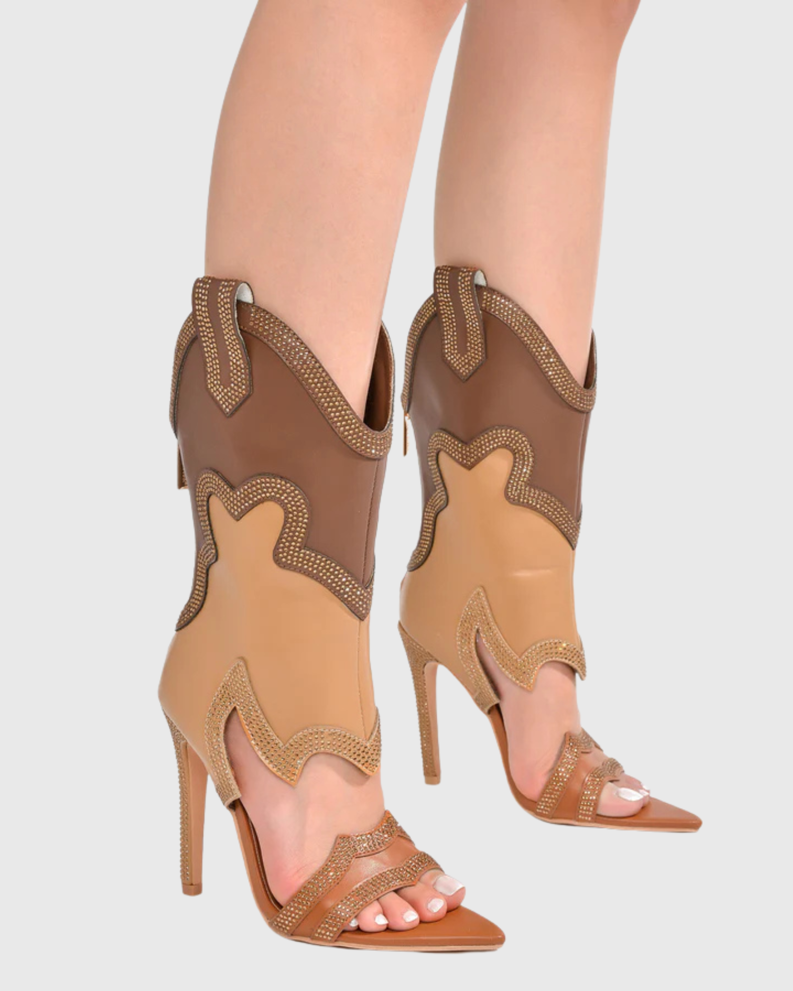Ortensia Rhinestone Cowboy Sandals In Brown$199.90 USD