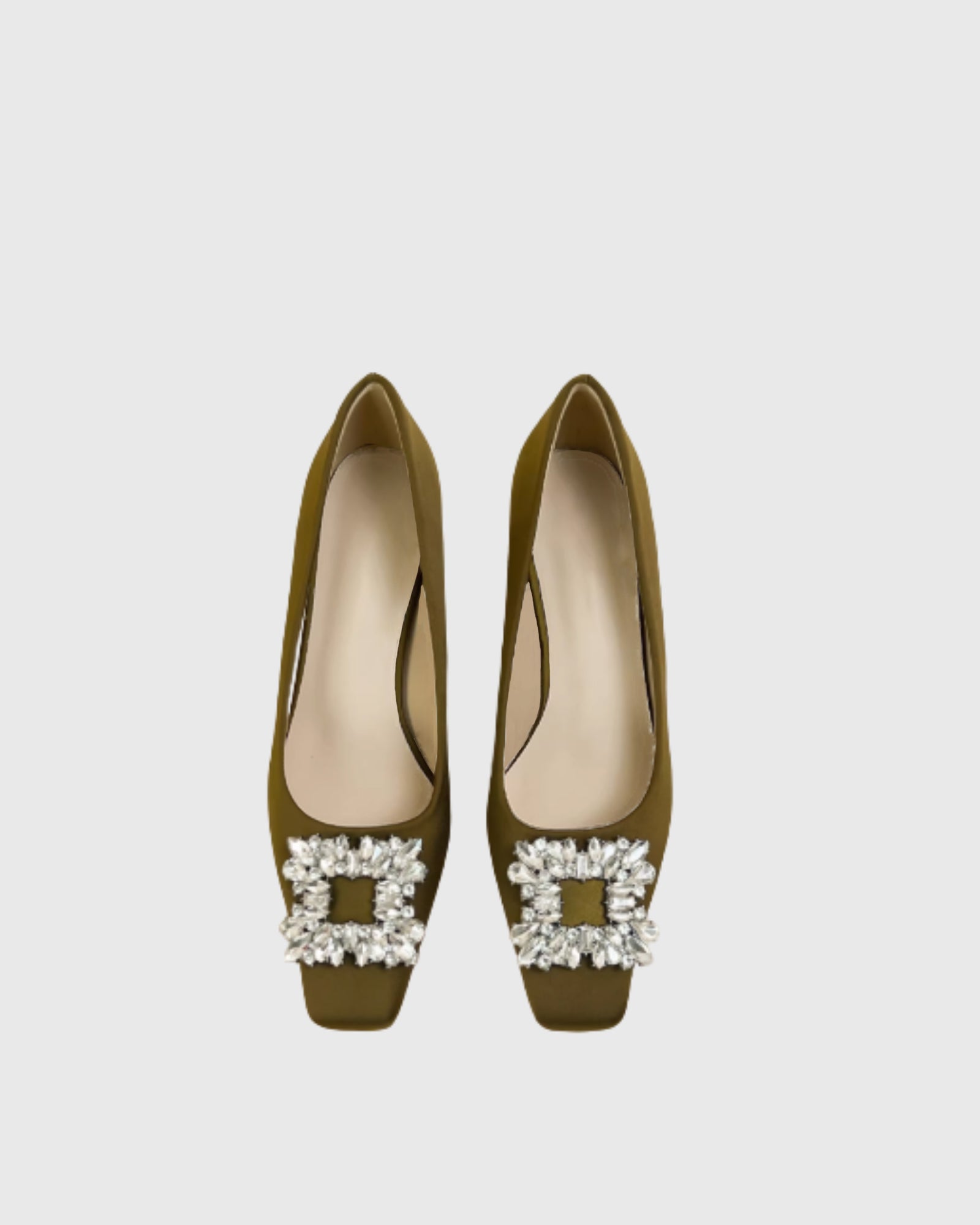 Elevate your everyday style with the Sadah Chunky Heel Pumps in Olive. Crafted from luxurious satin, these pumps feature a comfortable 4 cm chunky heel that's perfect for all-day wear. The elegant rhinestone buckle adds a touch of sparkle and sophistication to any outfit. The convenient pull-on design makes them effortless to slip on and off. For the perfect fit, we recommend sizing up if you're between sizes.