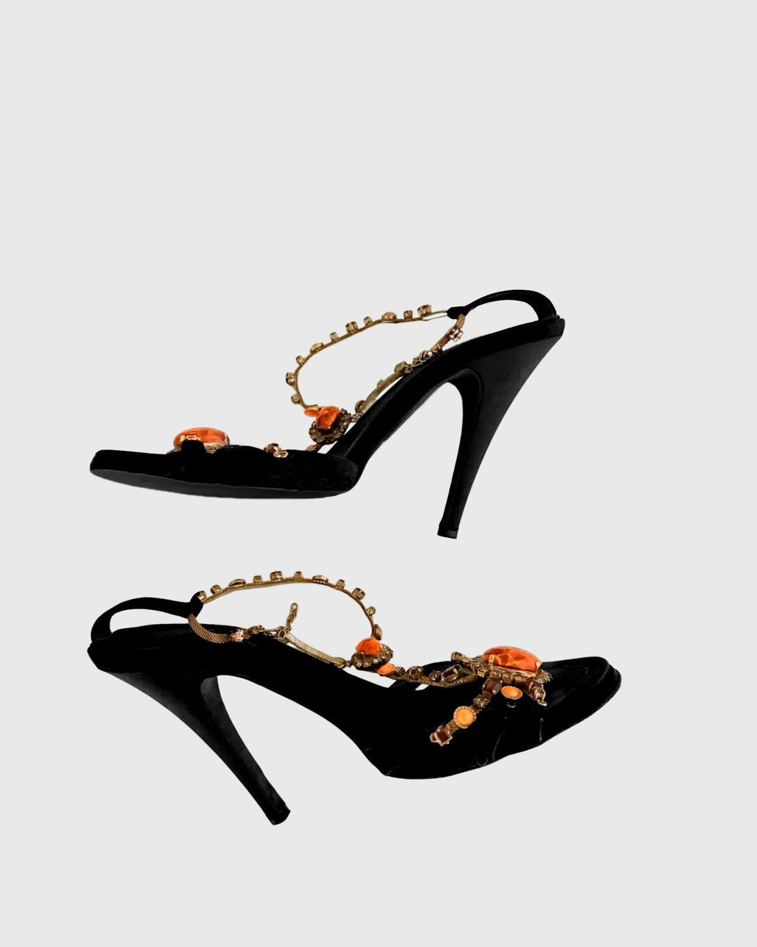 Step into timeless elegance with the Cahir Vintage Gem T Strap Sandals. Featuring a classic T-strap design adorned with delicate vintage-inspired gems, these sandals offer both style and comfort. The secure fit and cushioned sole make them perfect for all-day wear, whether you're at a summer event or enjoying a casual outing. Elevate your look effortlessly with a pair that combines vintage charm and modern ease.