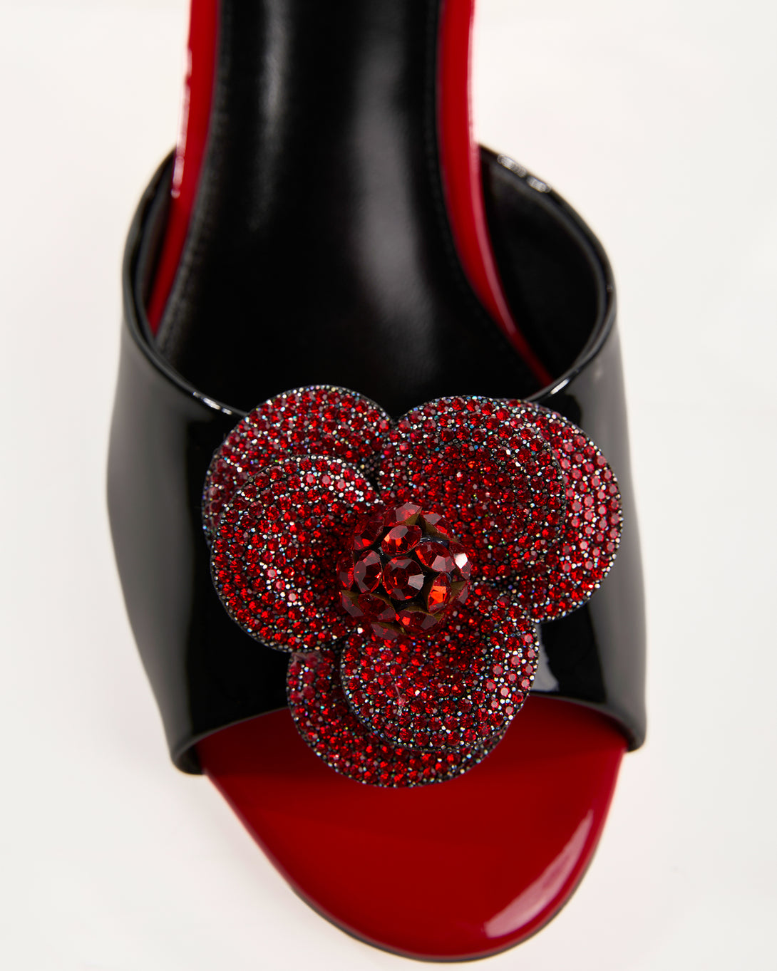Step into elegance with the Amari Rhinestore Flower Slippers, designed to add a touch of sparkle and charm to any outfit. Featuring delicate flower embellishments adorned with shimmering rhinestones, these slippers offer both comfort and standout style. Perfect for special occasions or elevating your everyday look, they blend graceful design with practical wearability. Treat your feet to a stylish upgrade that glows with subtle glamour and graceful flair.