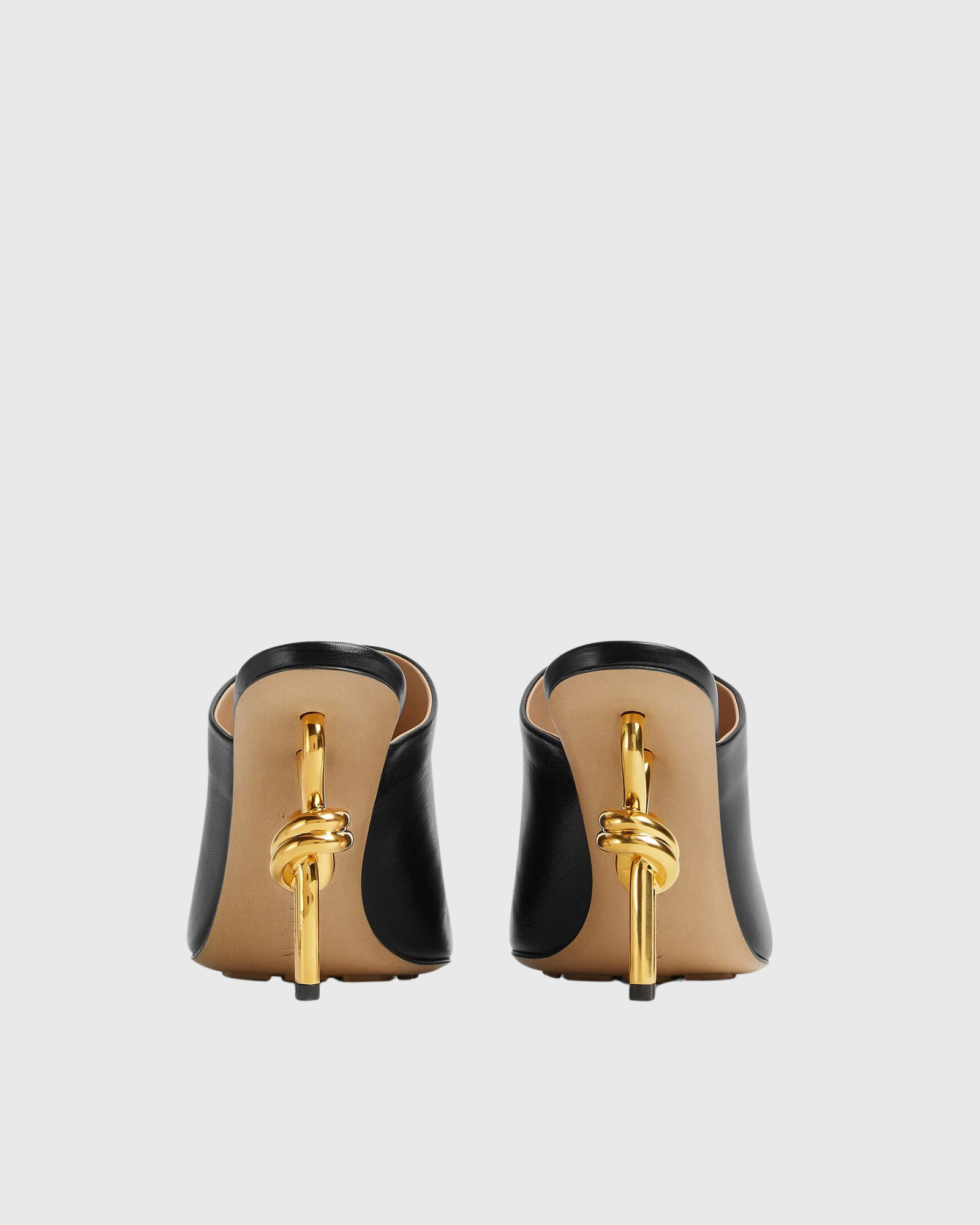 These Fiamma Leather Metal Knot Slippers are the ultimate combination of style and comfort! Crafted with luxurious leather and featuring a stunning metal knot detail, these slippers are perfect for any occasion. Slip into the ultimate indulgence and elevate your look with these sophisticated black slippers.