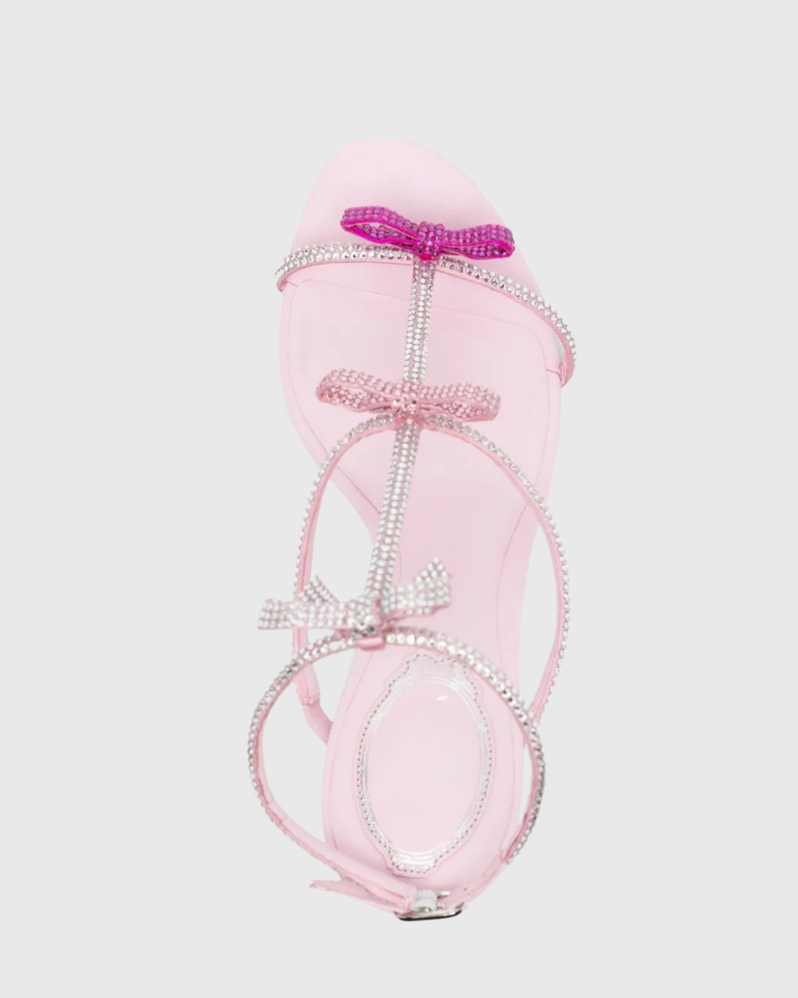 Ilaria Rhinestone Bow Strap Sandals In Pink