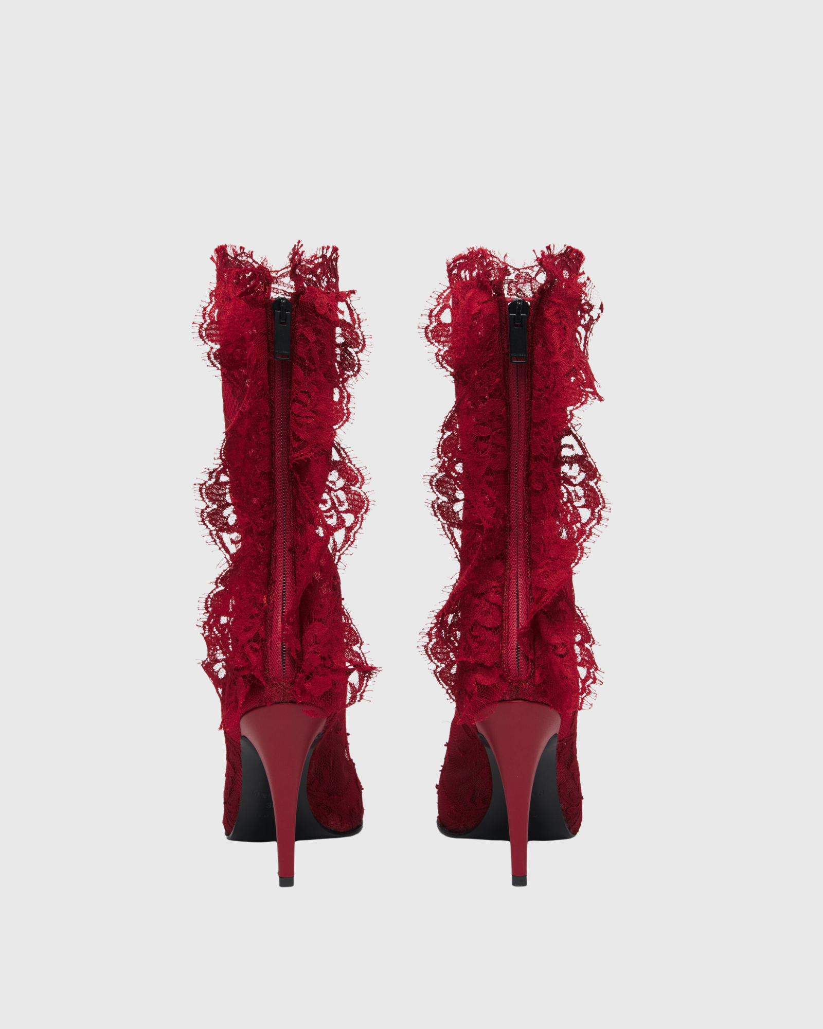 James Lace Ankle Boots In Bloody Red Make a bold statement with these striking lace-up ankle boots in a rich, deep red that commands attention. Crafted with a classic lacing system for a secure, customizable fit, these boots blend timeless style with modern edge. The ankle-height silhouette works seamlessly with everything from tailored trousers to flowing dresses, making them a versatile essential for any wardrobe. Whether you're dressing up for an evening out or elevating your everyday look, these boots deliver confidence and sophistication in every step.