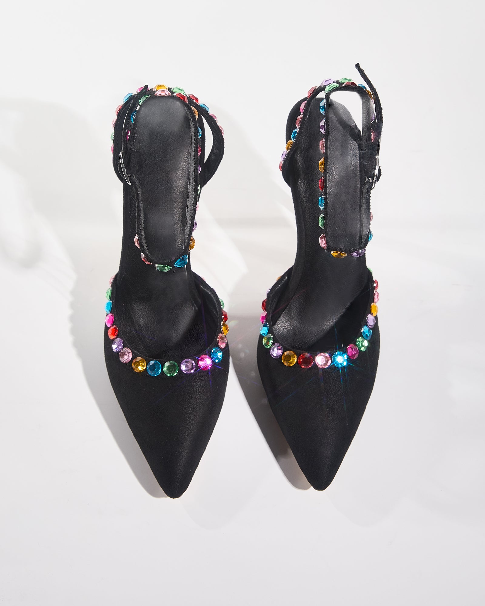 Kaya Rainbow Rhinestone Strap Pumps In Black