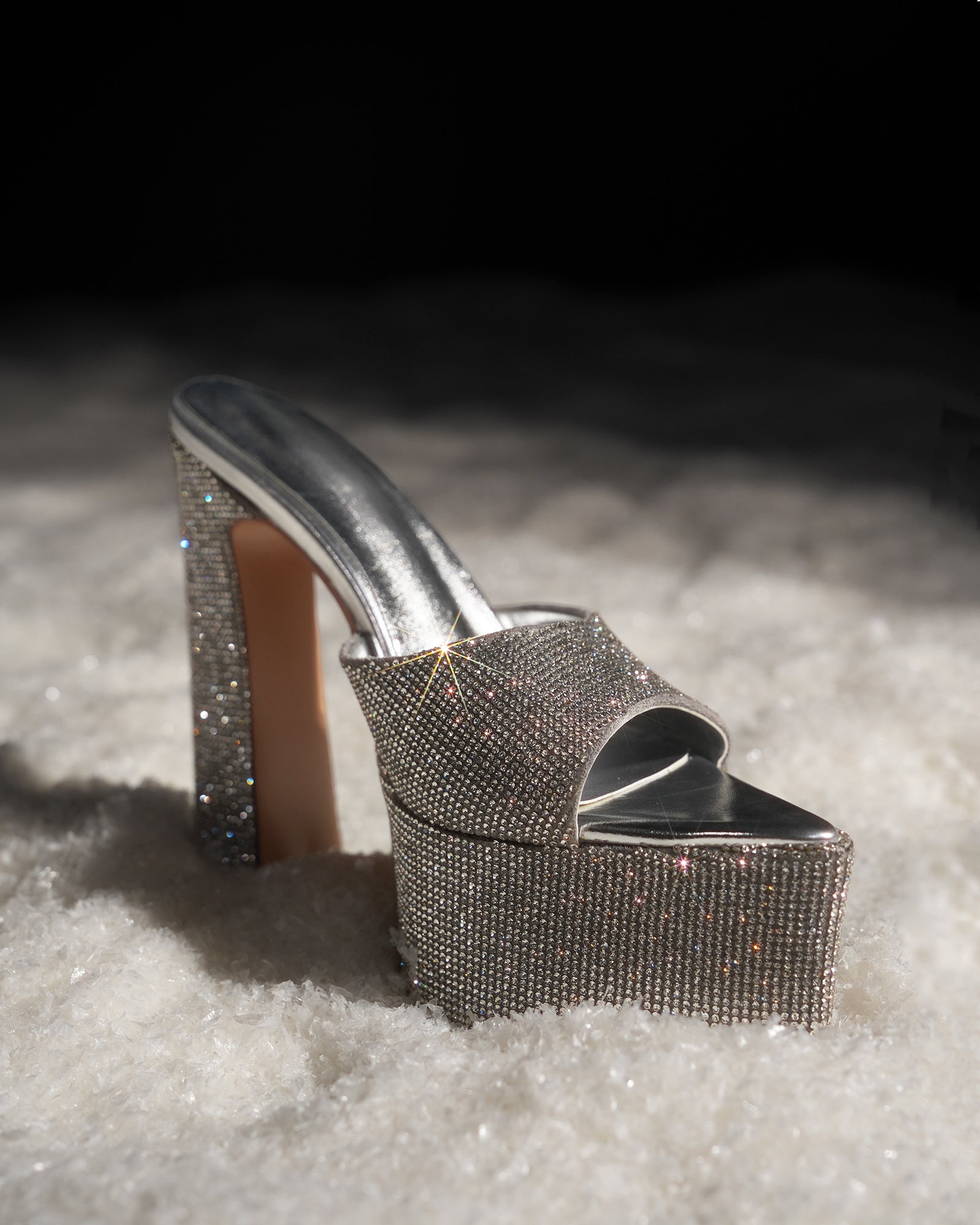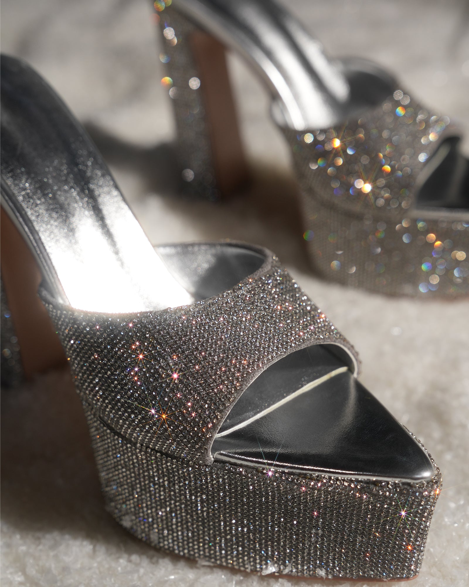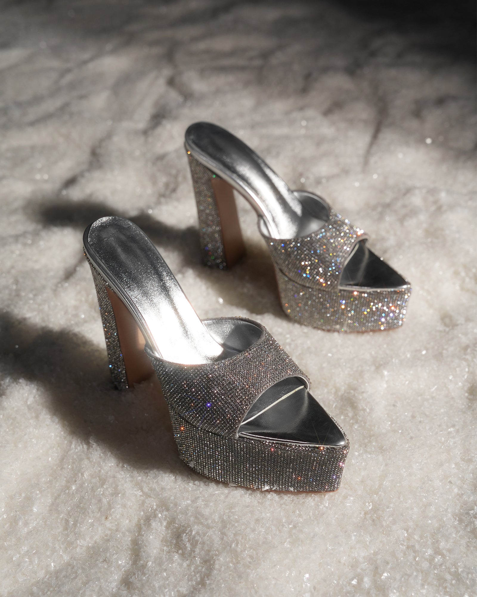 Leyla Diamente Sparkle Platform Mules In Silver
