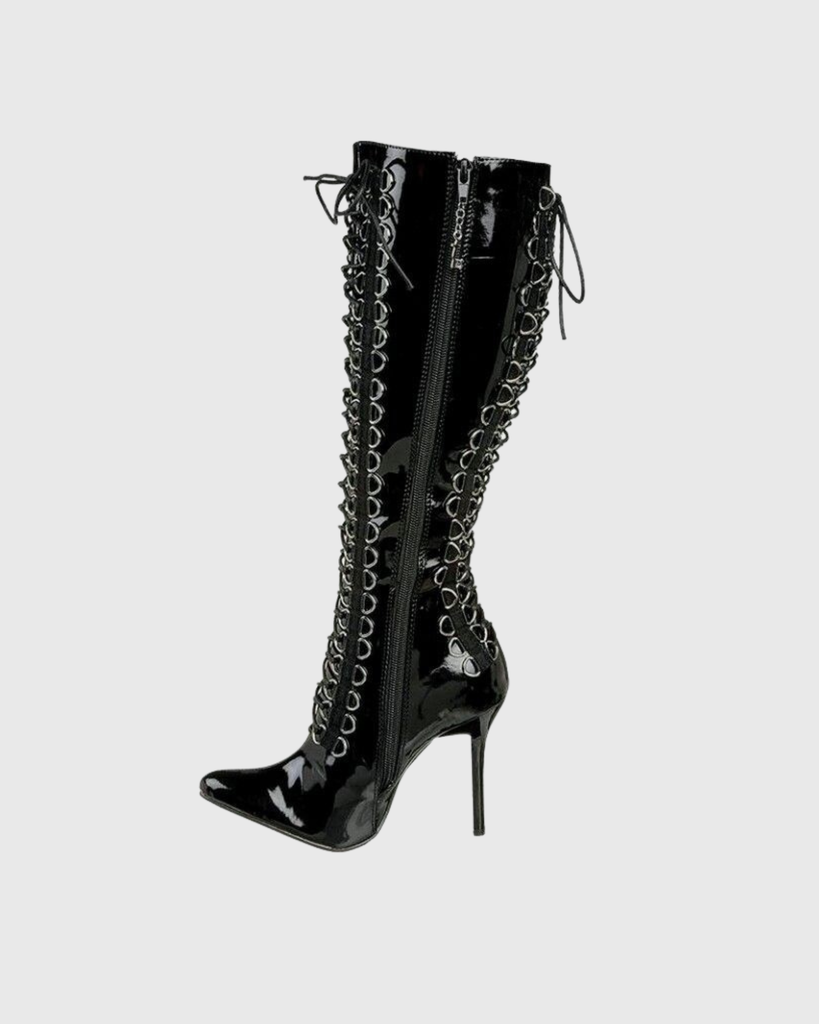 Step into bold elegance with our Tala Patent Leather Lace Up Knee High Boots. The glossy patent finish catches every light, while the lace-up design offers both adjustable comfort and head-turning style. These statement boots elevate any outfit from ordinary to extraordinary, creating a powerful silhouette that commands attention wherever you go.