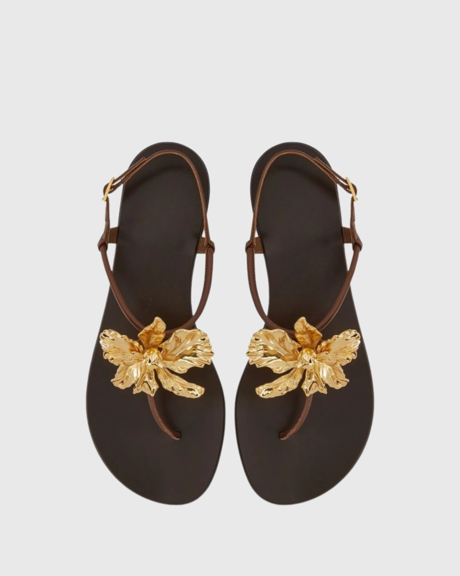 Step into effortless elegance with the Vail Gold Flower Thong Flats in Dark Brown. These flats combine a rich, dark brown hue with a delicate gold flower accent, adding a touch of sophistication to any outfit. Designed for comfort and style, they are perfect for all-day wear, whether you're strolling through the city or enjoying a casual outing. Elevate your footwear collection with these versatile flats that blend classic charm with modern flair.