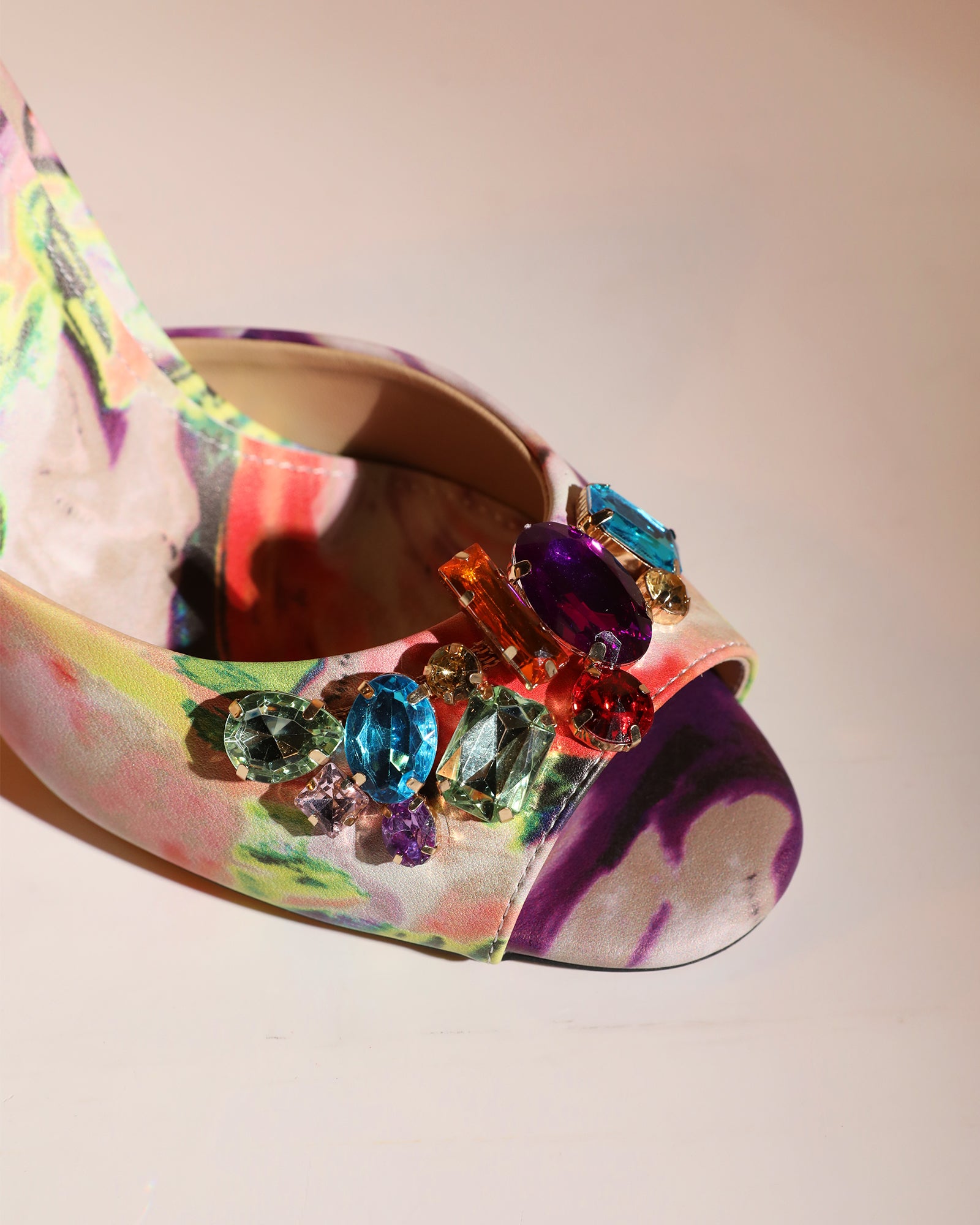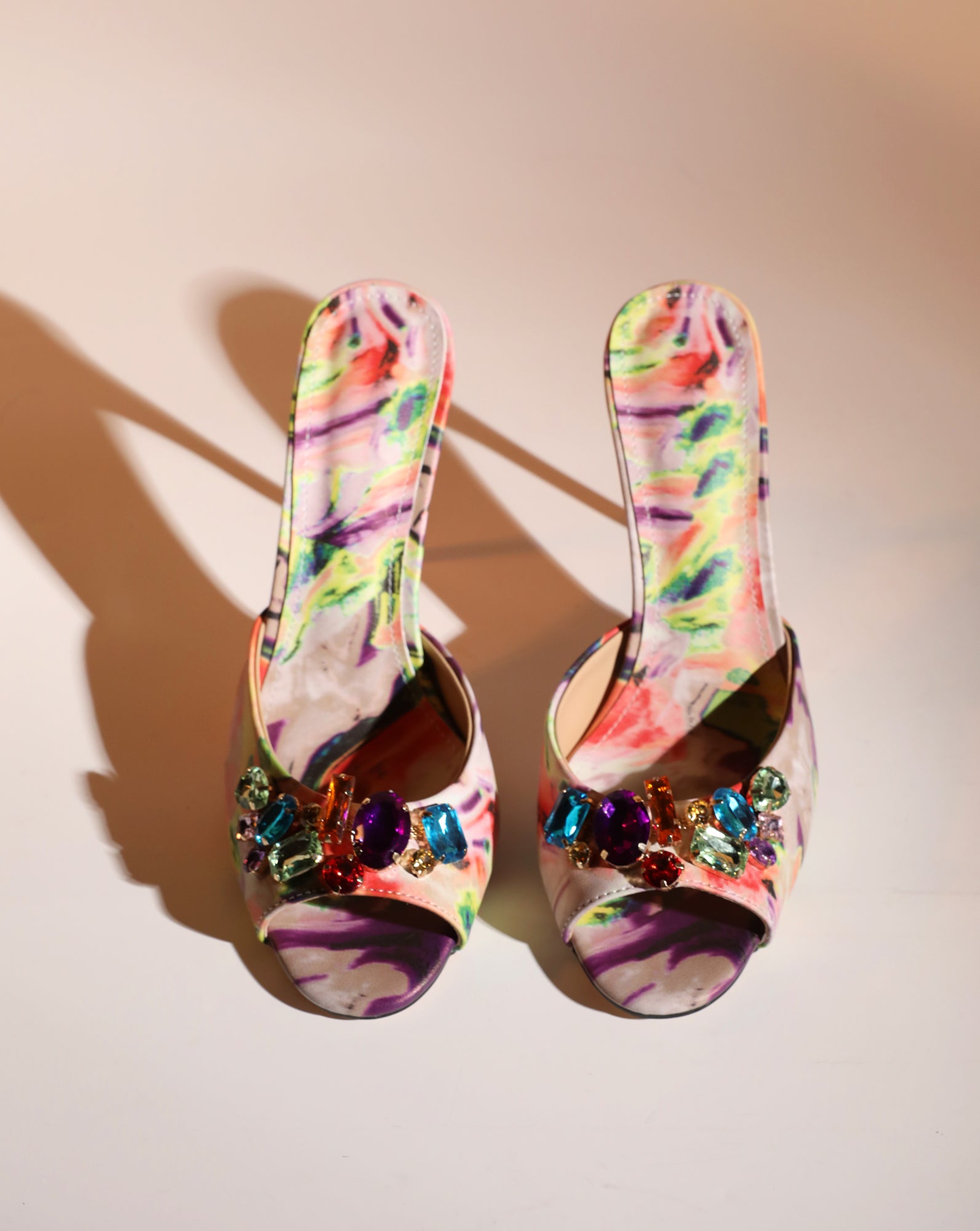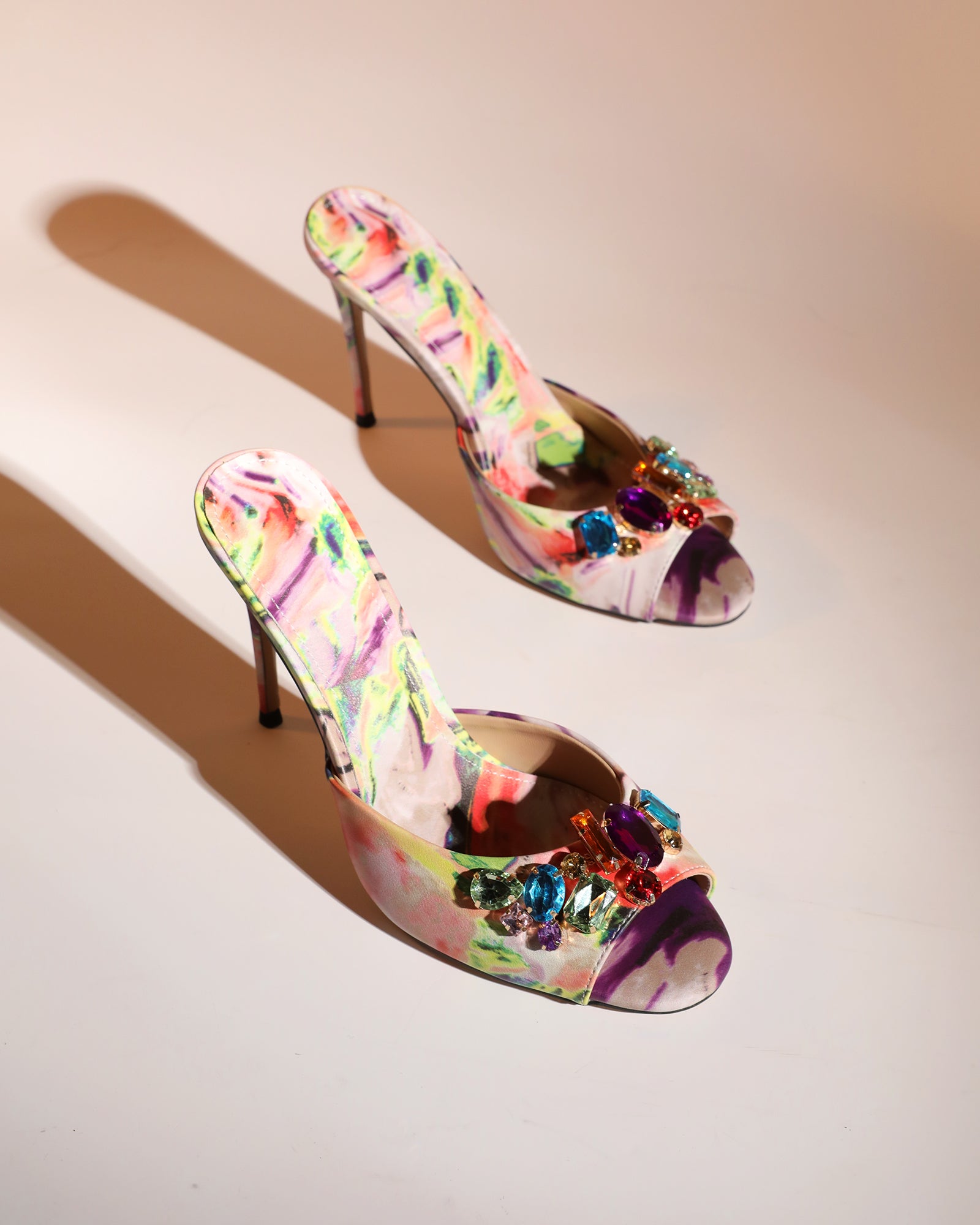 Step into effortless style with the Veda Printed Multicolor Diamond Open Toe Mules. Featuring a vibrant diamond print in rich multicolors, these mules deliver eye-catching flair to any outfit. The open toe design keeps your look fresh and breathable, while the slip-on silhouette makes them perfect for busy days. Whether you're heading to the office or out for casual adventures, these versatile mules combine comfort with contemporary design. Elevate your footwear collection with a pair that works as hard as you do.
