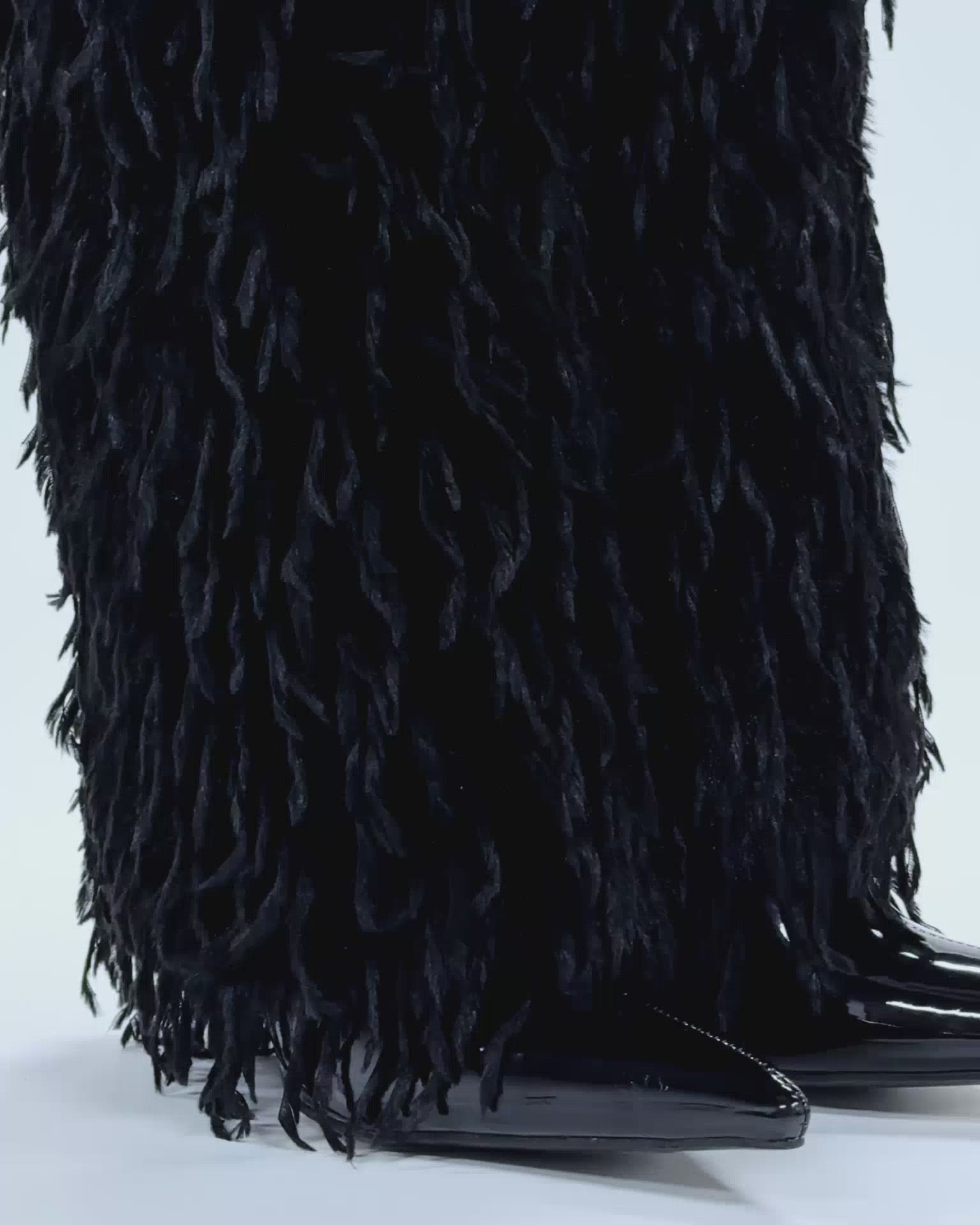• Material: Black patent leather and satin leg shaft with matching ostrich feathers