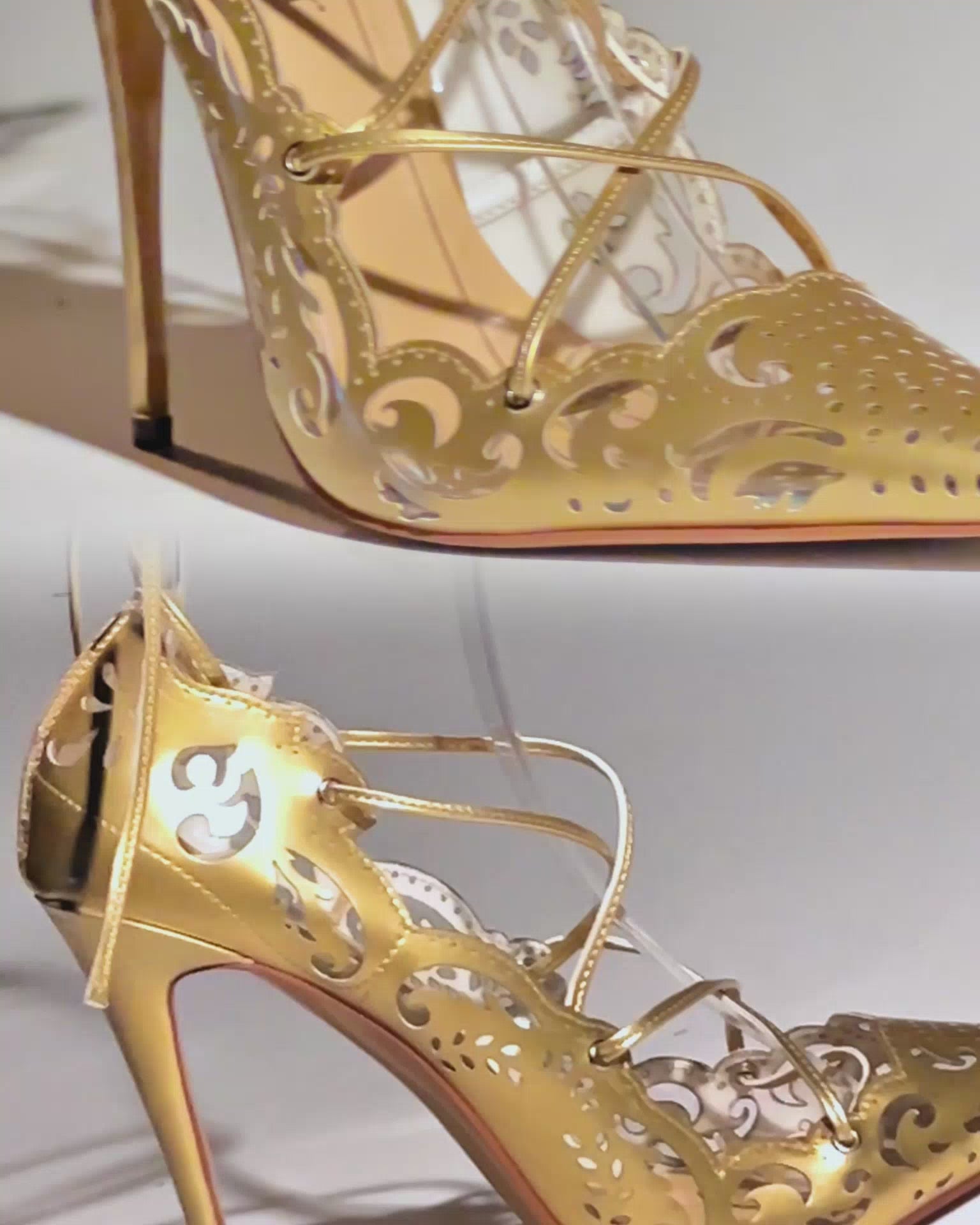 Ariya Cutout Pattern Lace Up Pumps In Gold