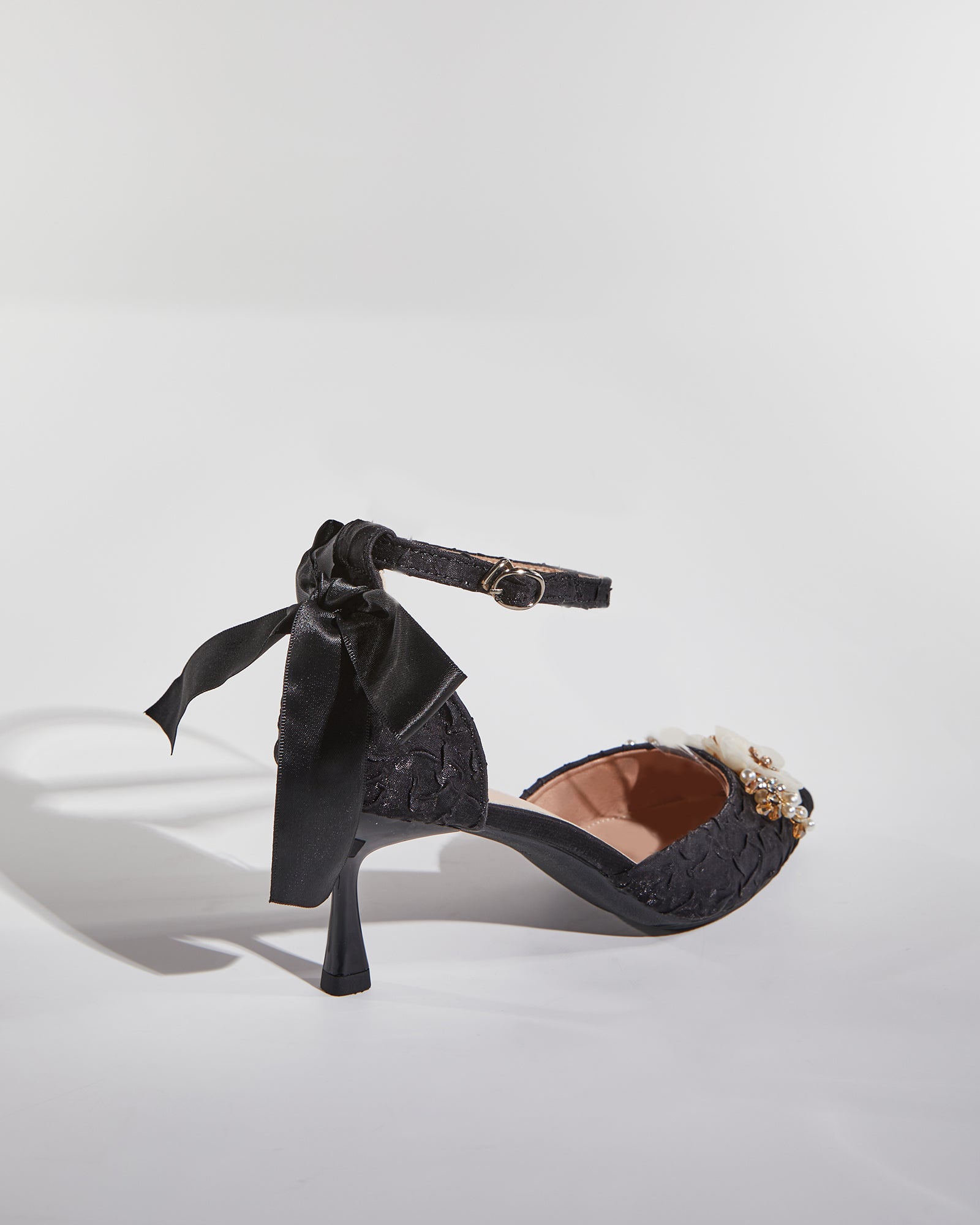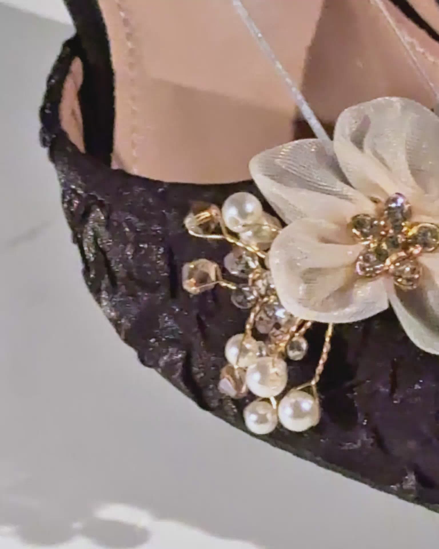 Step into style with our Cat Rhinestone Mesh Flower Sparkle Pumps! These elegant black pumps are adorned with a beautiful cat rhinestone design and feature a mesh flower for added sparkle. Perfect for any occasion, these pumps will make you stand out and feel confident with every step.