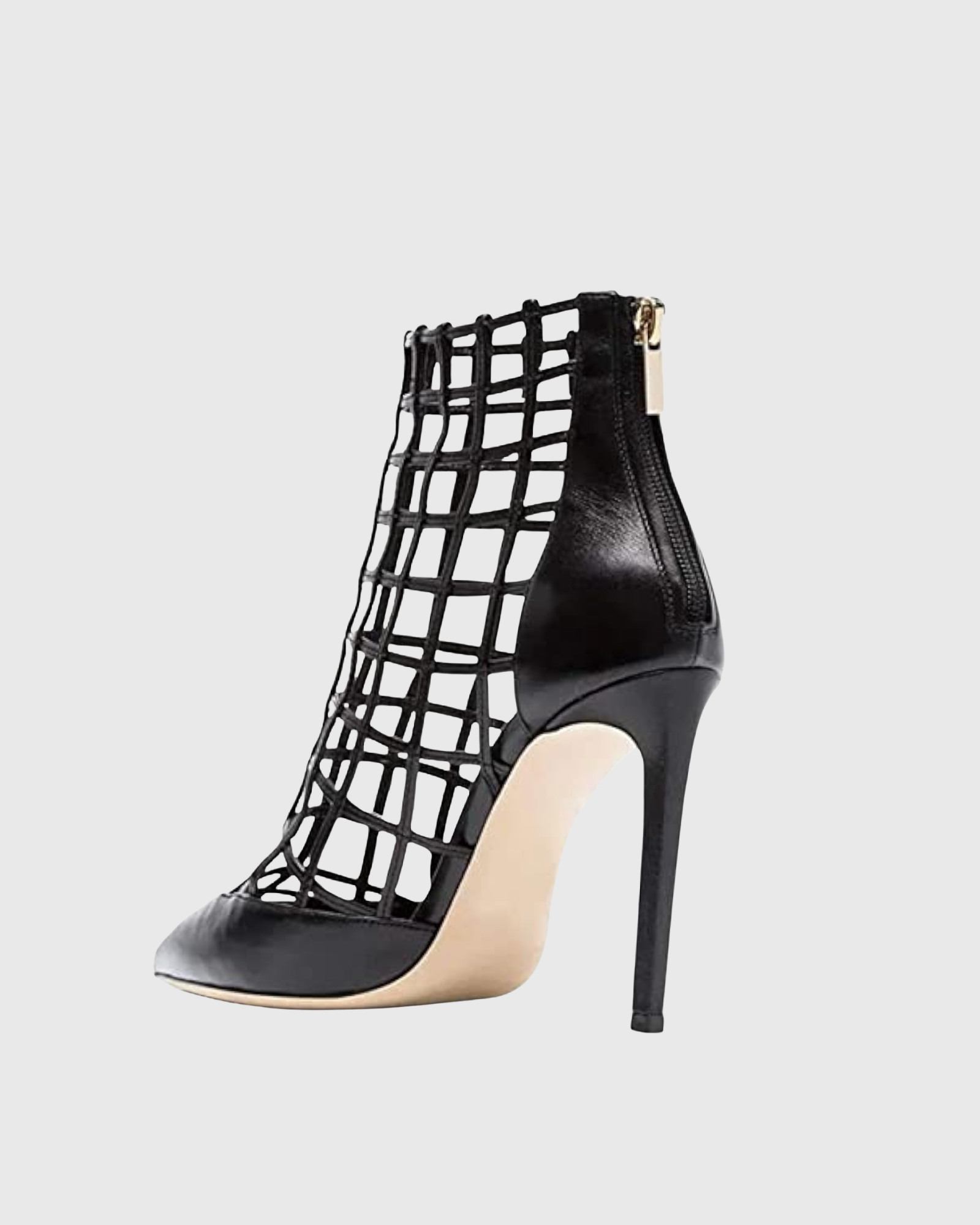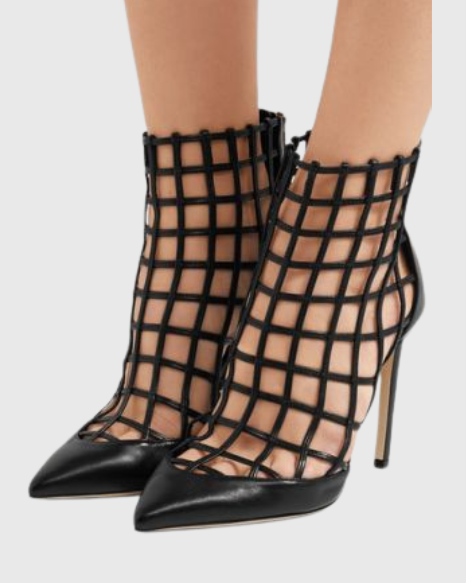 Step confidently in the Cloe Cage Boots in Black, designed to blend edgy style with everyday comfort. Featuring a striking cage design, these boots add a bold statement to any outfit while providing secure support. Perfect for those who want to stand out, they combine fashion-forward appeal with versatile wearability. Elevate your footwear collection with these must-have boots that promise to turn heads wherever you go.
