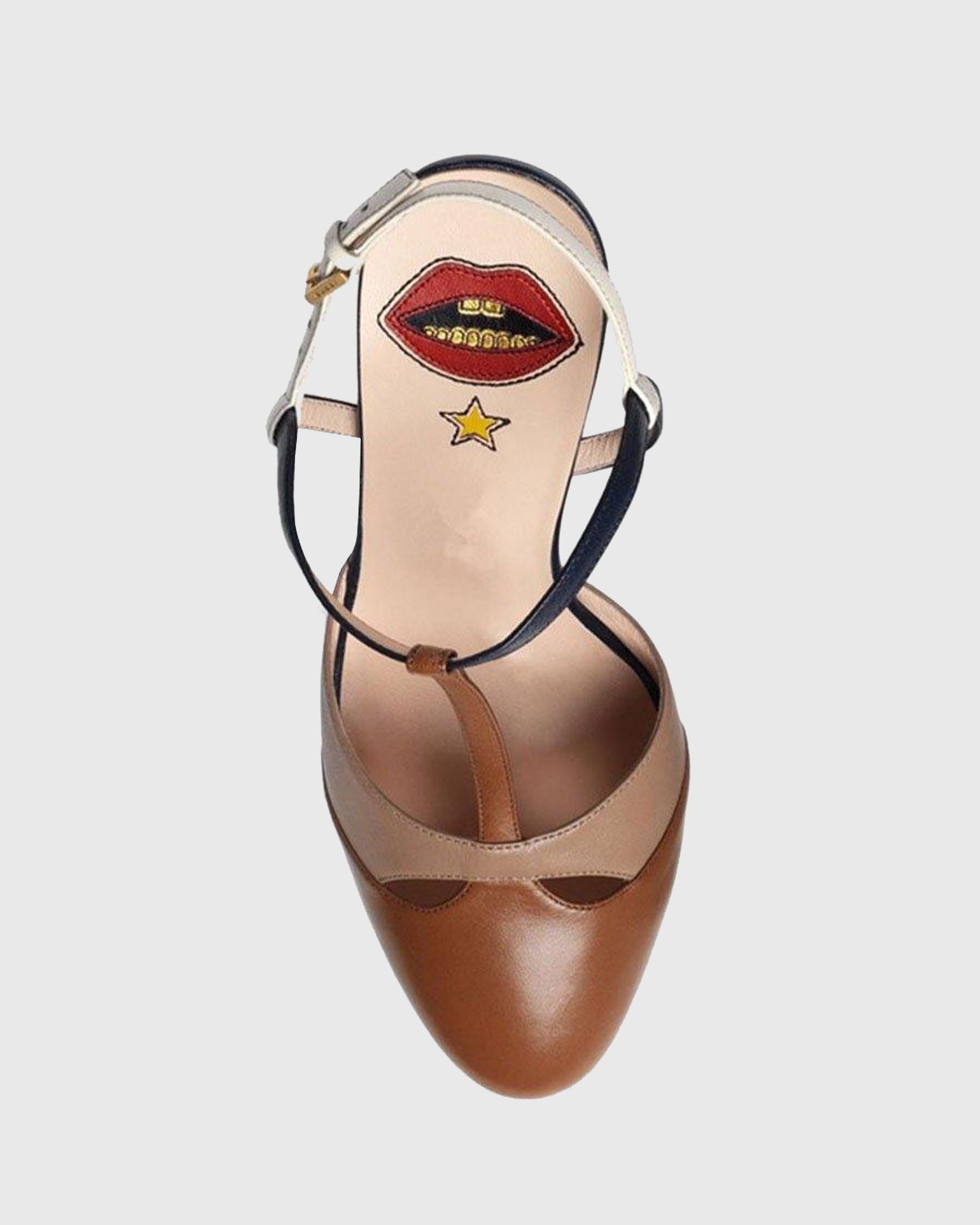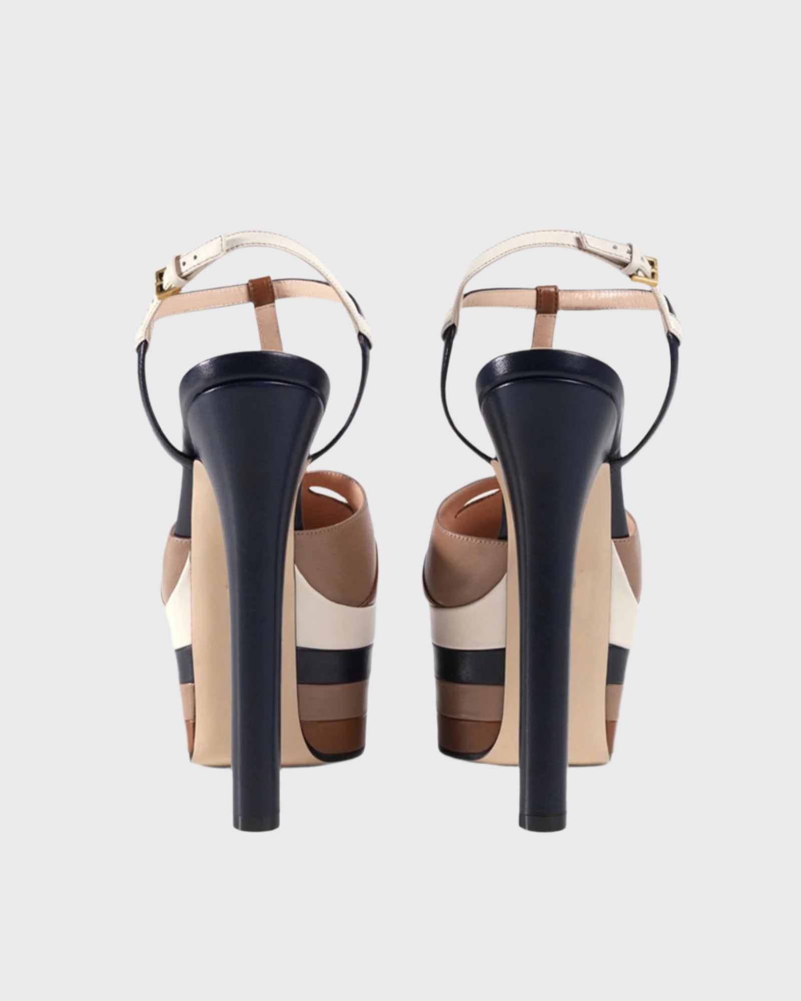 Dionisia Stripe Strap Platform Heels In Brown