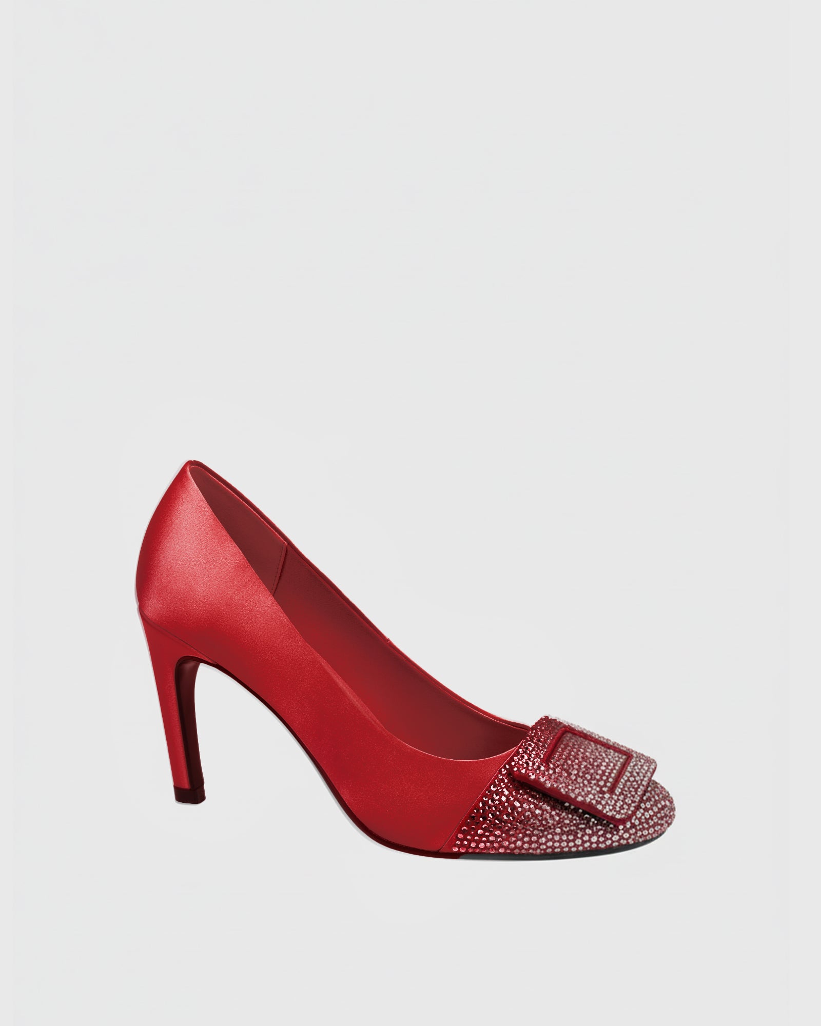 Elen Rhinestone Buckle Splicing Pumps In Red