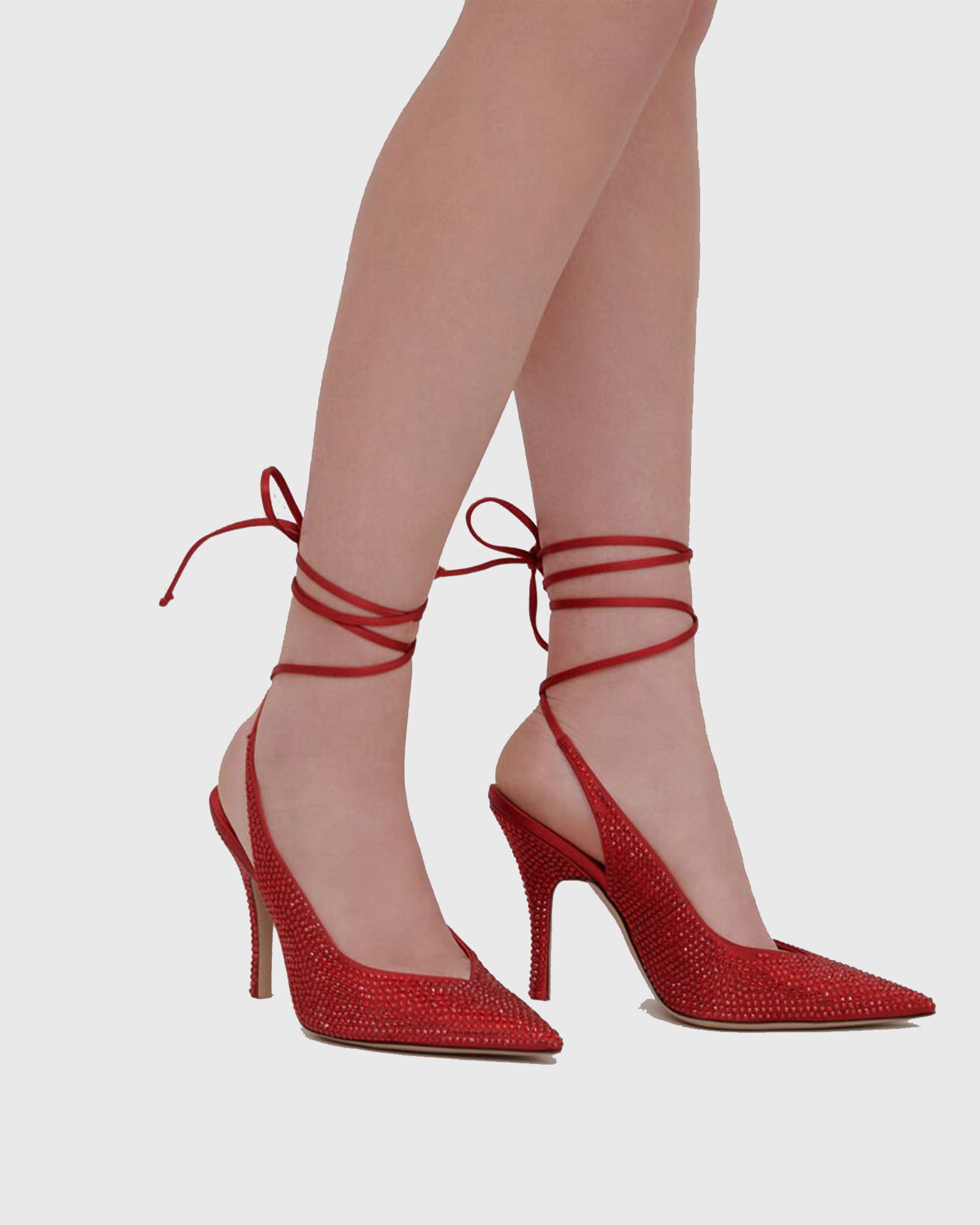 Giusi Rhinestone Lace Up Pumps In Red