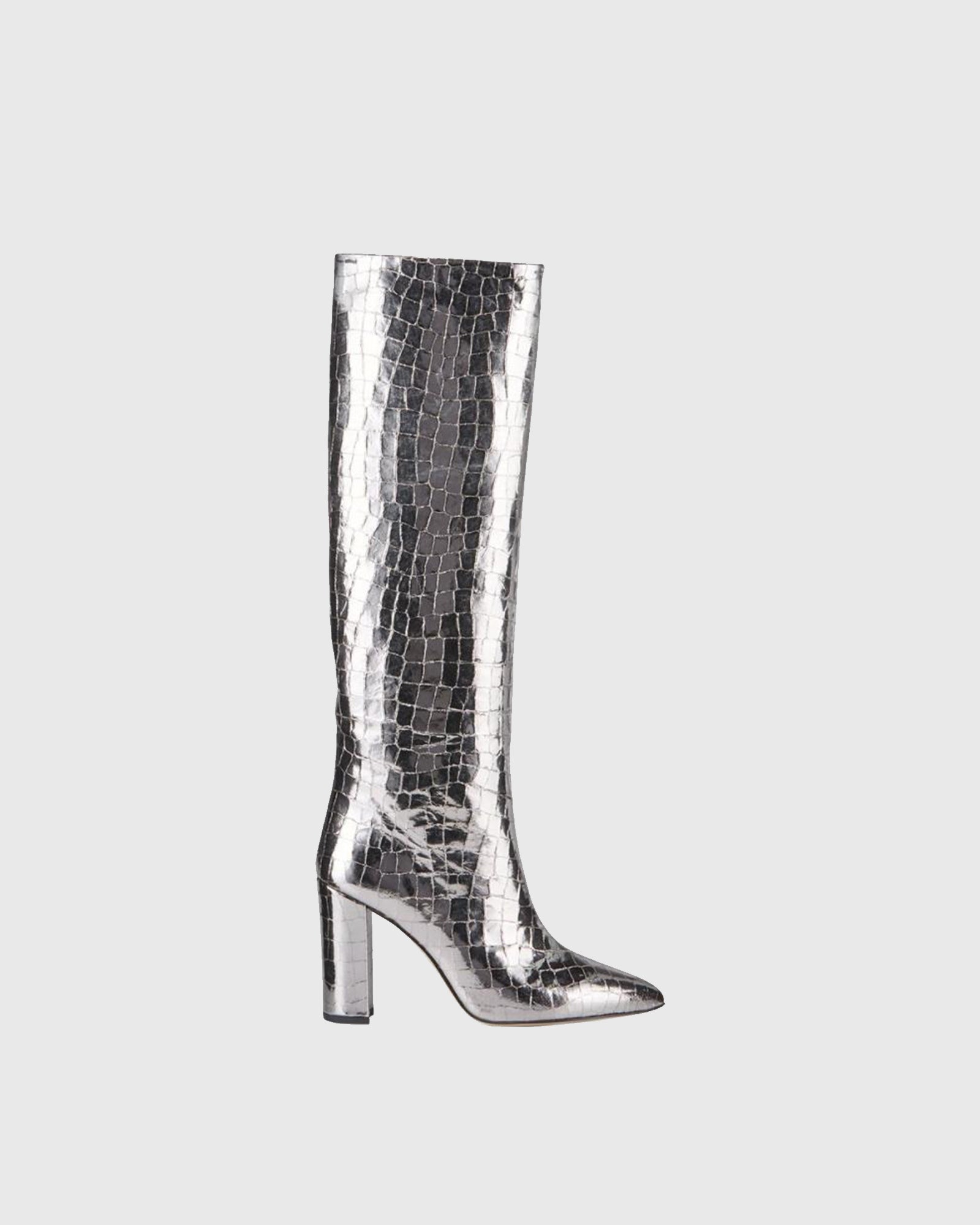 Grazia Crocodile Print Leather Knee High Boots In Silver