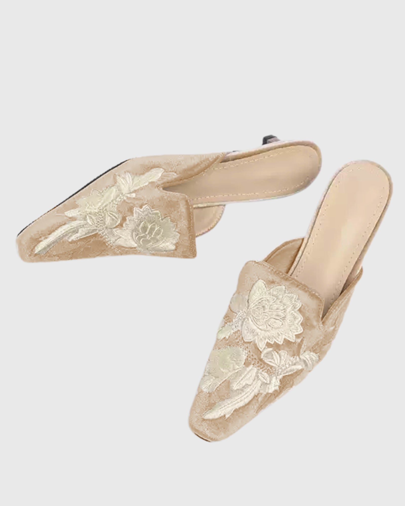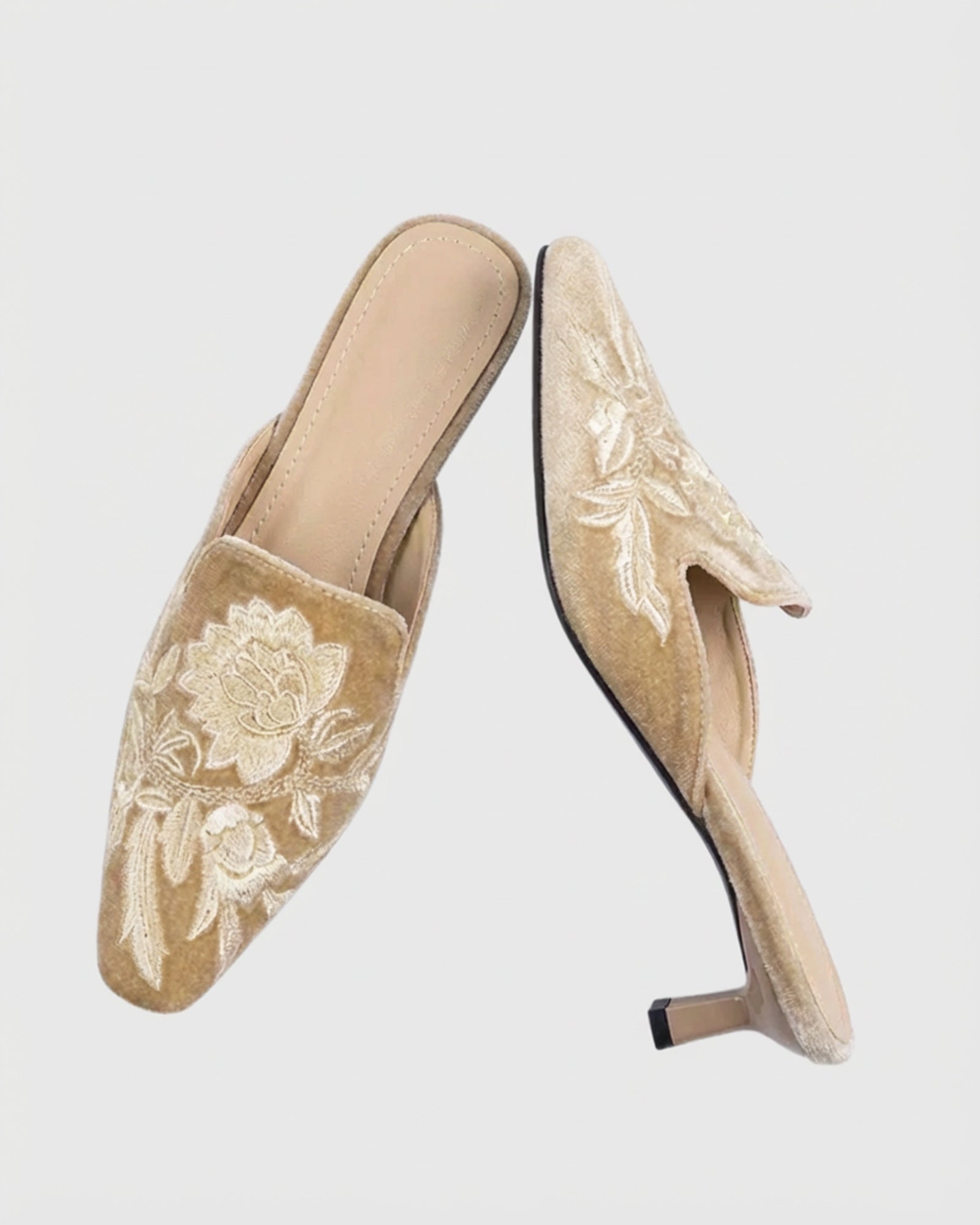 Slip into effortless elegance with the Greta Embroidered Satin Mules. Crafted from luxurious satin in a versatile nude tone, these mules feature delicate embroidered detailing that elevates any outfit from casual to refined. The comfortable slip-on design makes them perfect for transitioning from day to evening, while the sophisticated silhouette complements both minimalist and statement-making looks. Whether you're dressing up for an occasion or adding polish to everyday wear, the Greta mules deliver timeless style with modern comfort.