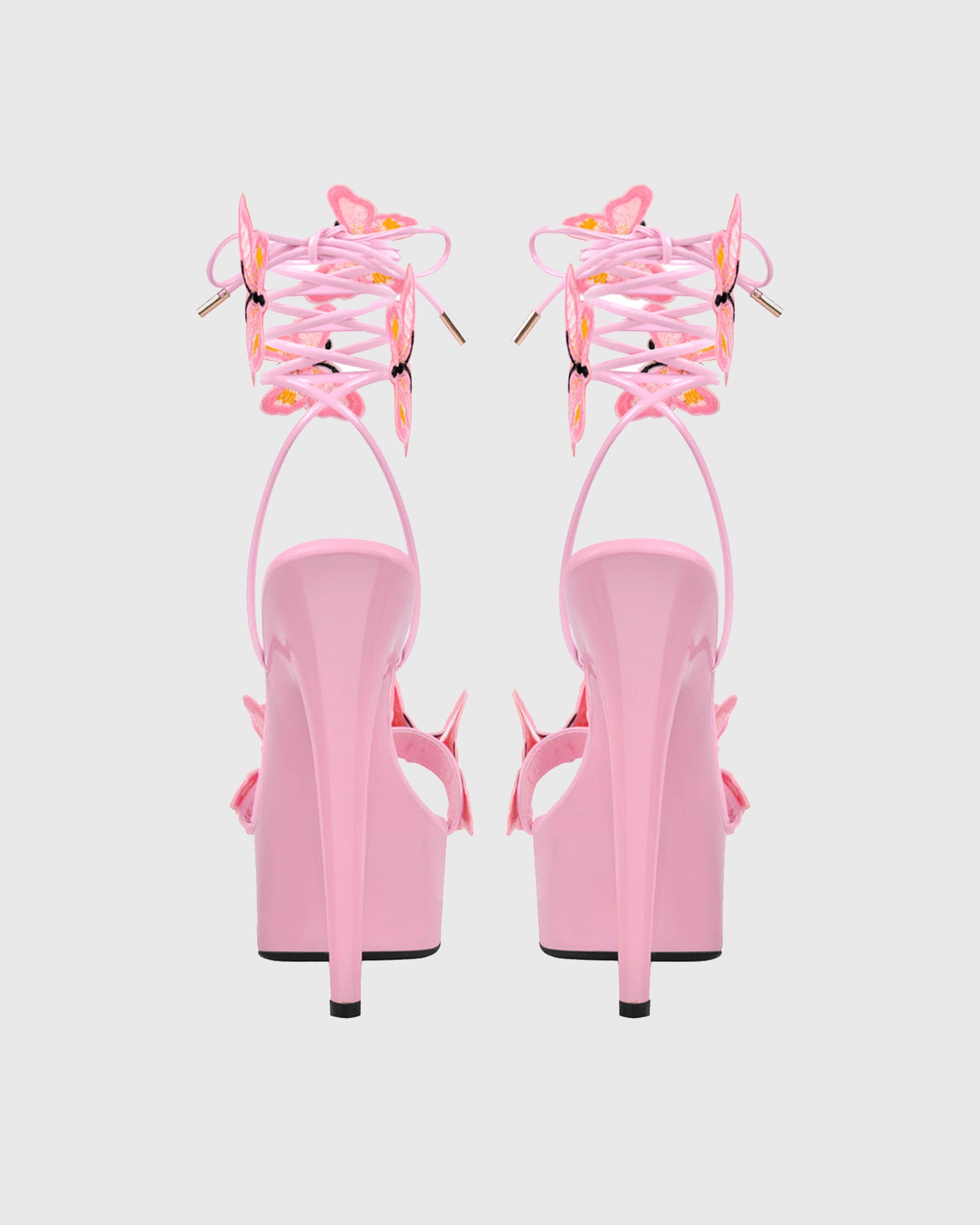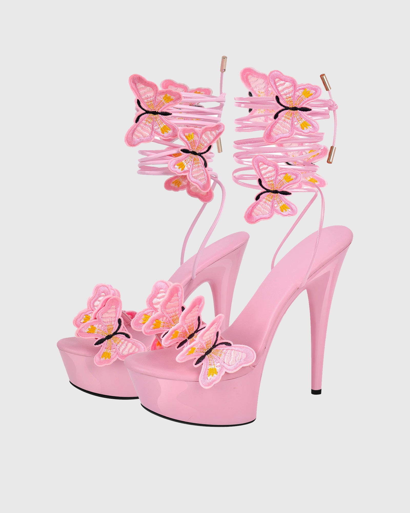 Lelia Bow Embroidery Lace Up Platform Sandals In Pink
