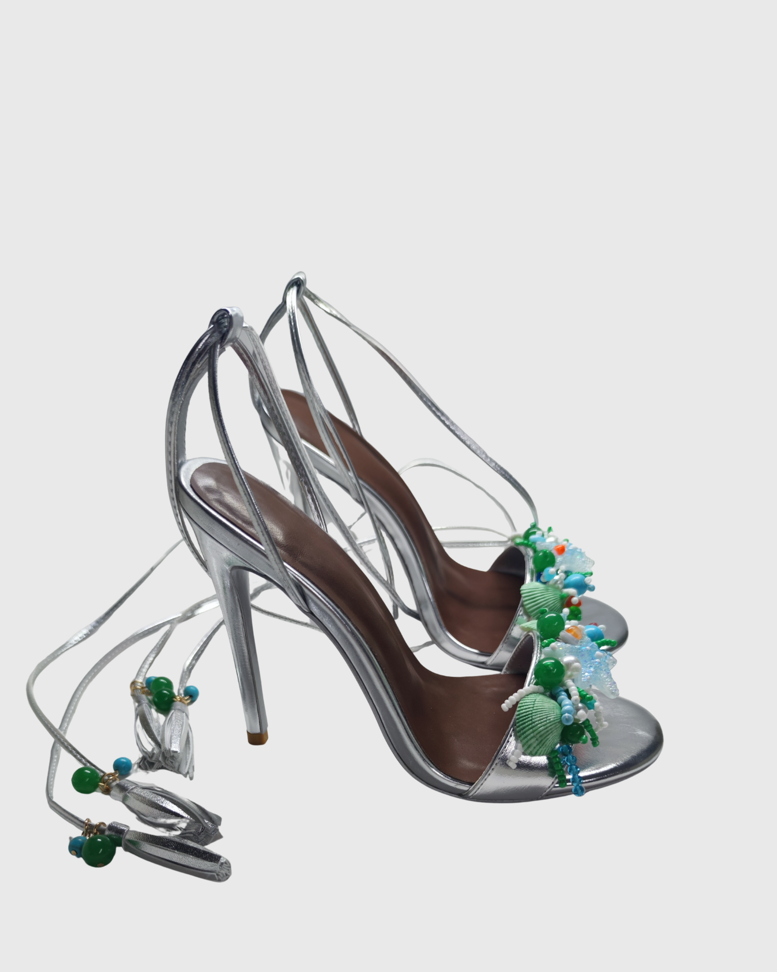 Melania Starfish Lace Up Sandals In Silver