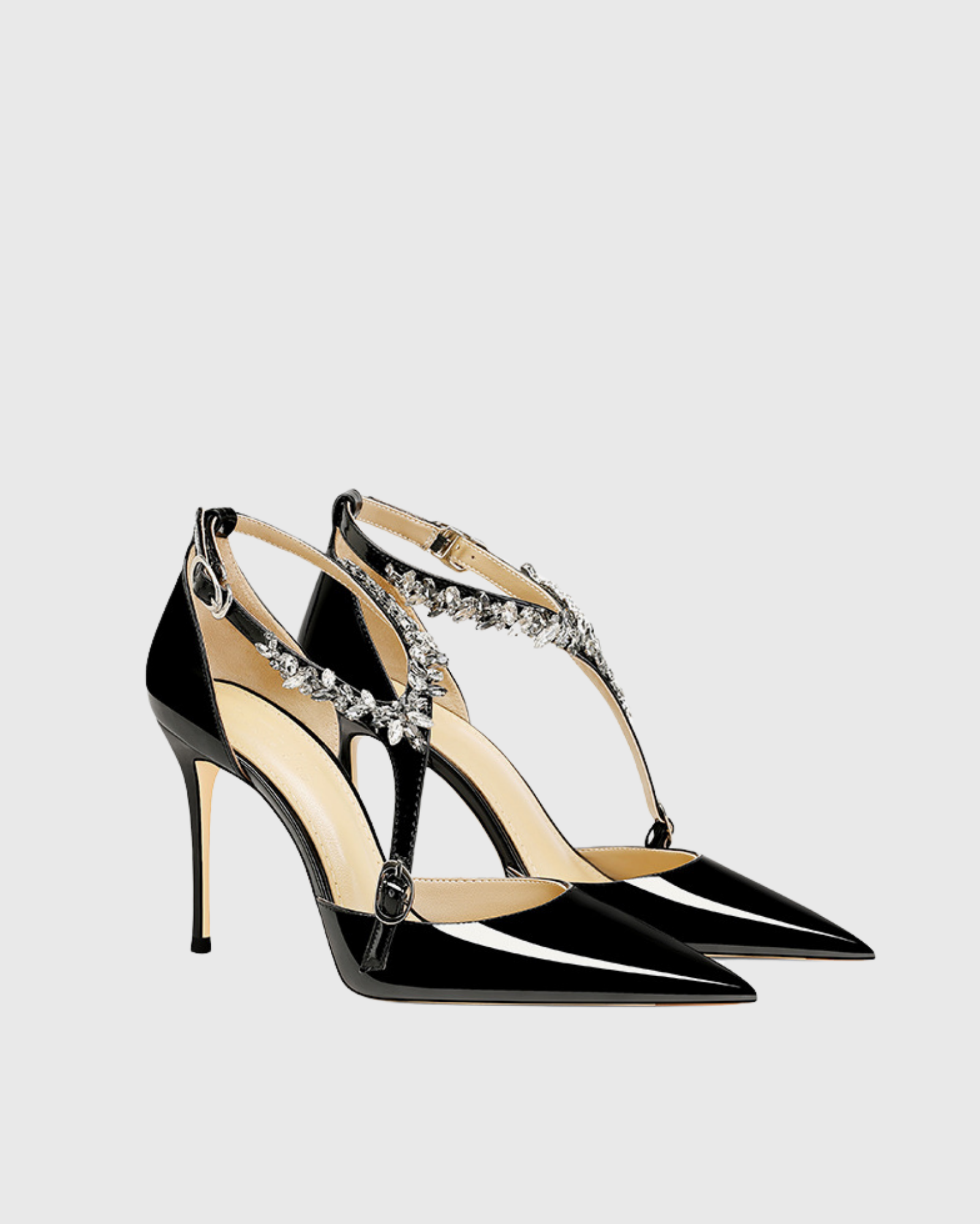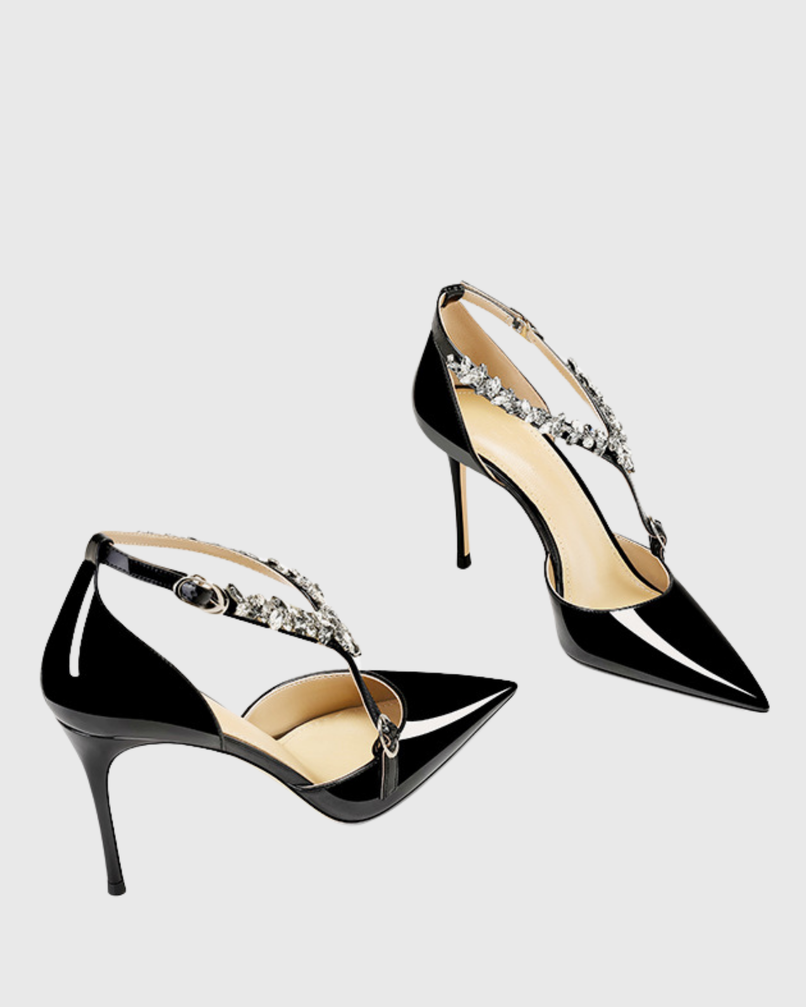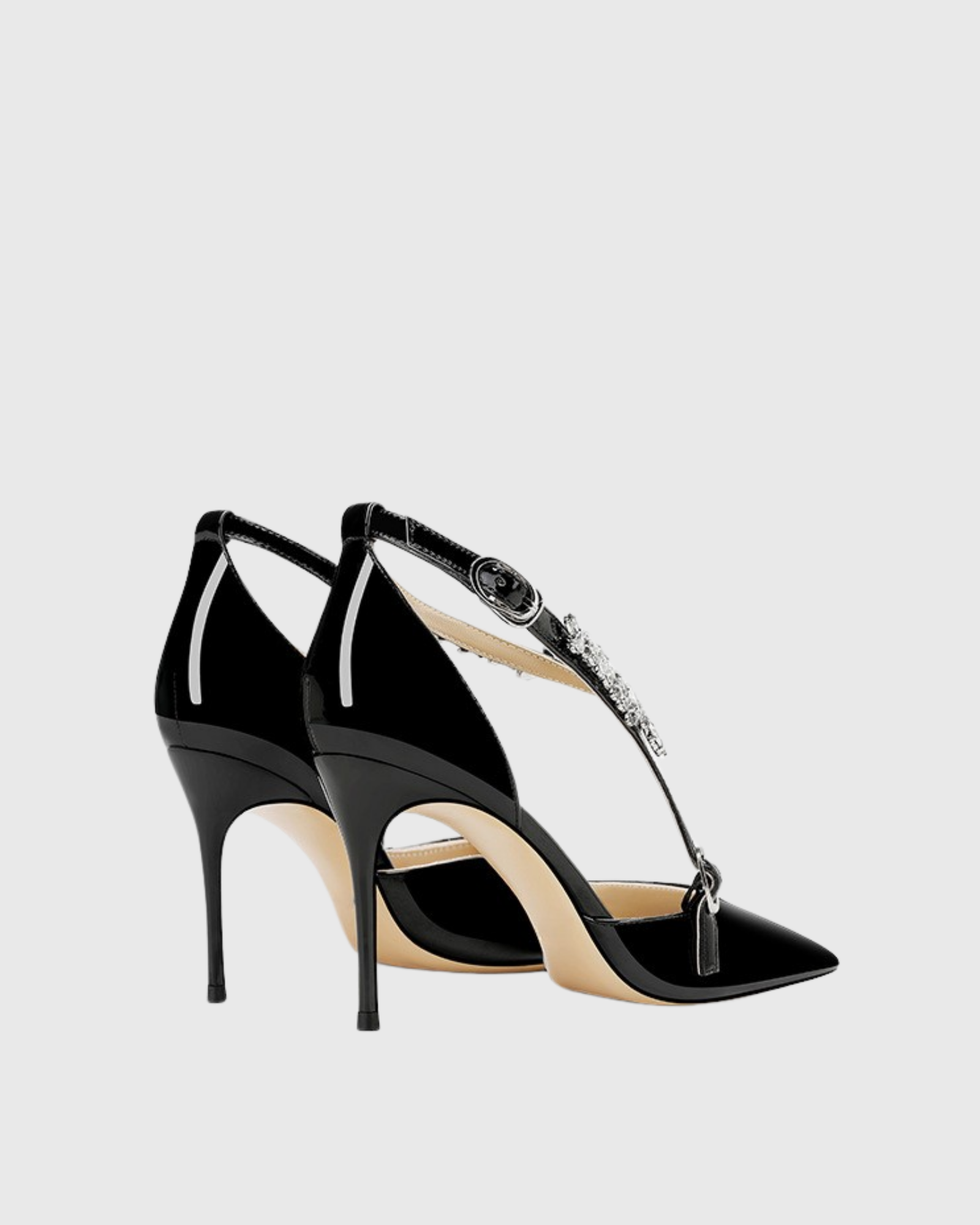 Teagan Rhinestone Halter Neck Strap Pumps In Black
