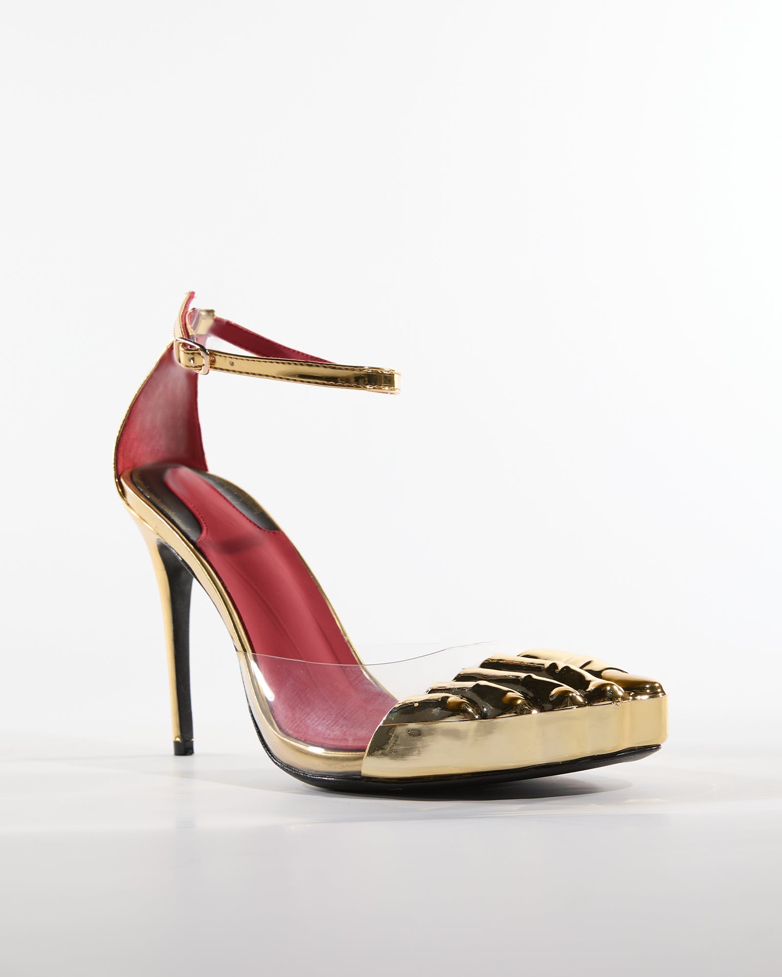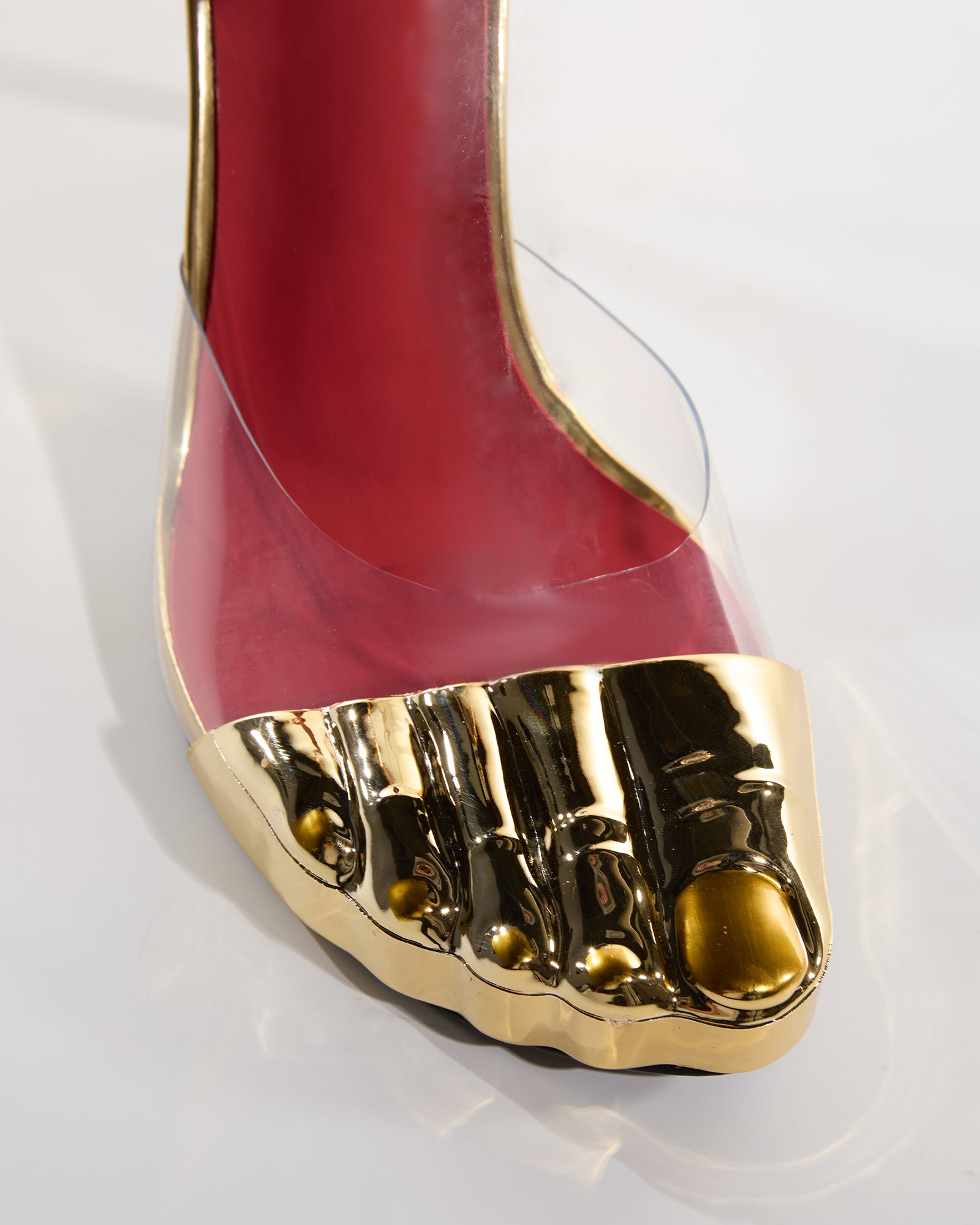 Introducing the Vanda Gold Toenail Strap Pumps, the perfect blend of style and comfort! These stunning pumps feature a unique toenail strap design and are crafted with high-quality materials for a comfortable and durable fit. Elevate any outfit with these elegant pumps and step out in style.