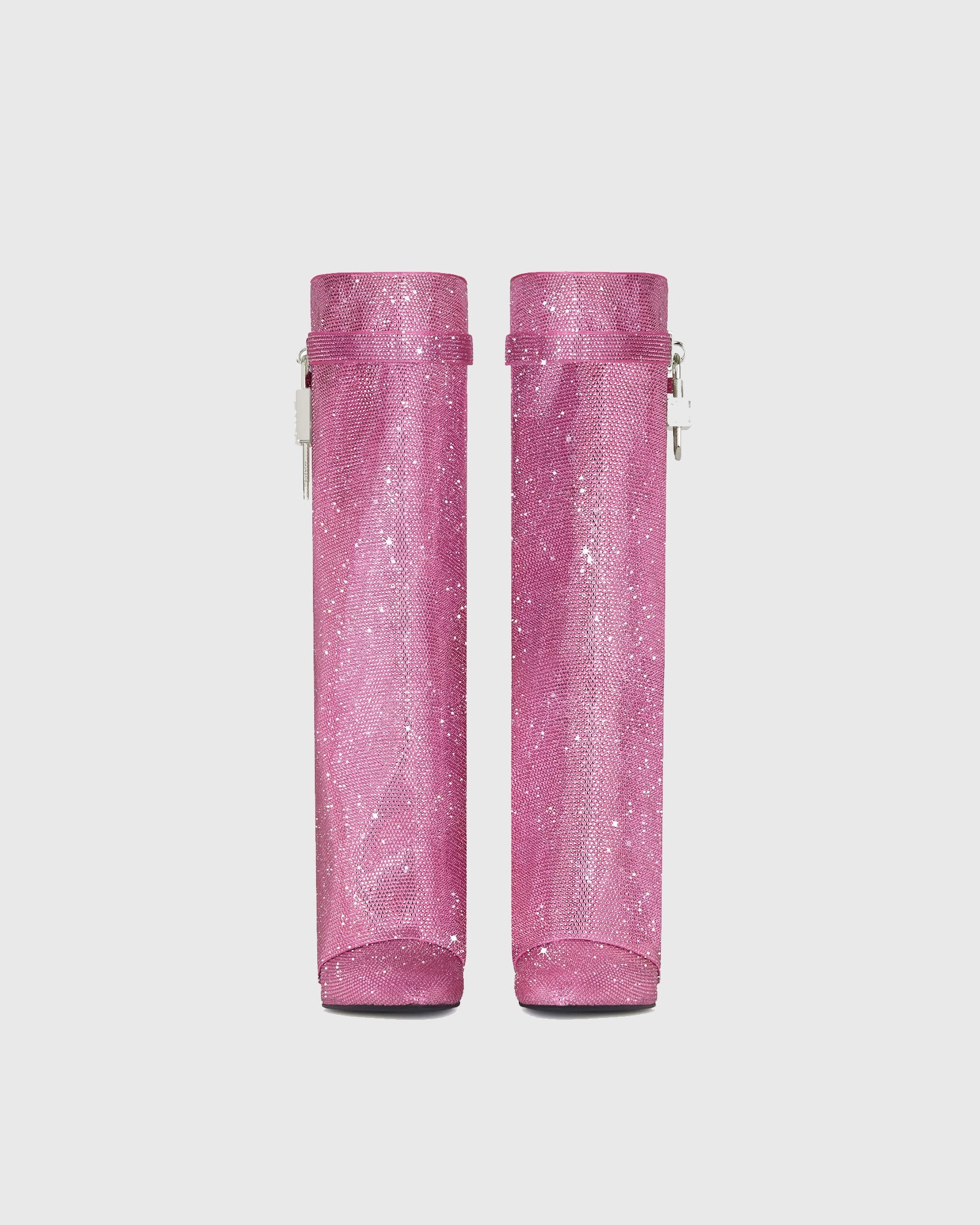 Bionda Buckle Rhinestone Velvet Knee High Boots In Pink
