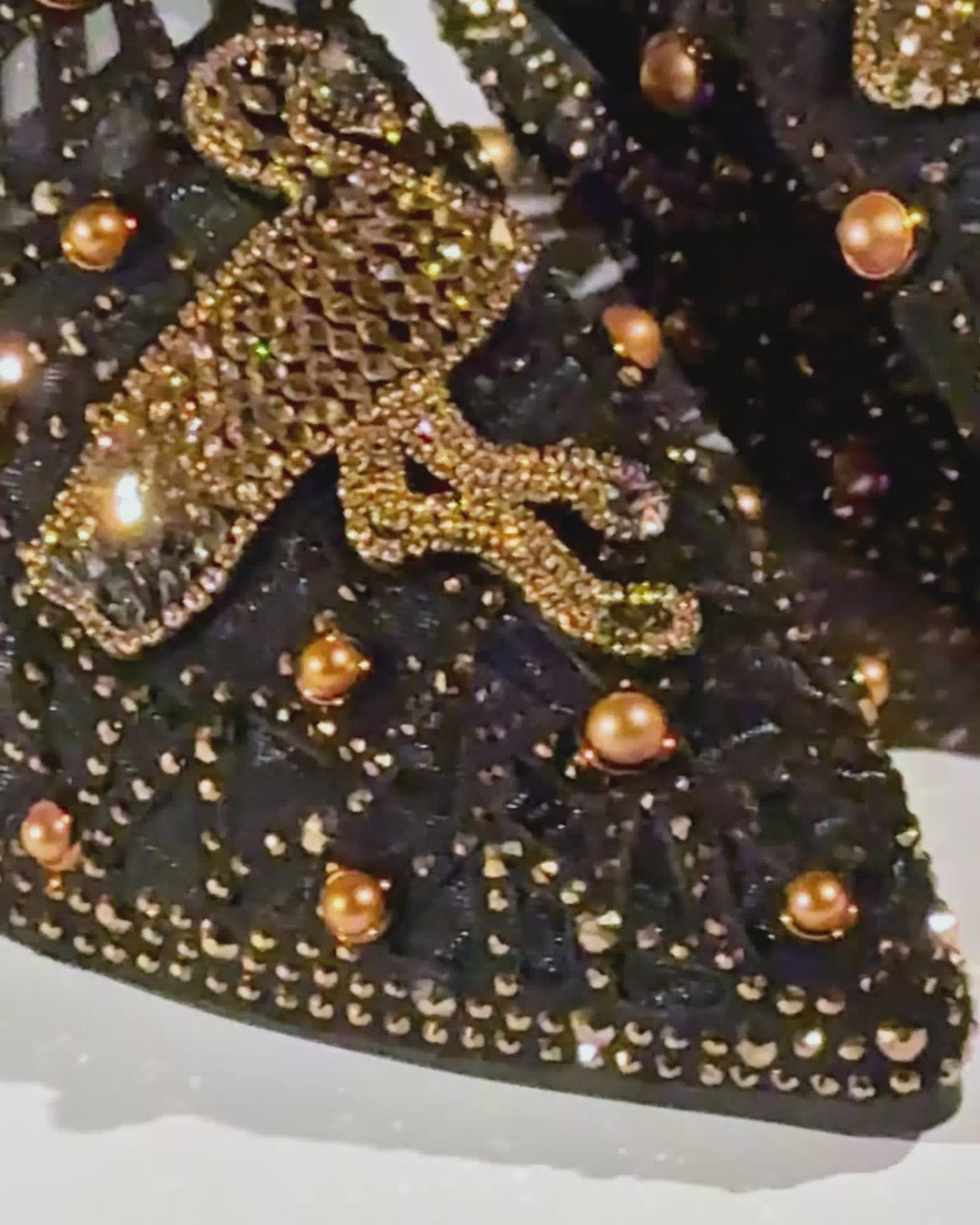 Slip into luxury with our Greta Crane Gilded Embellished Slippers in Black. These stunning slippers feature intricate gold embellishments that add a touch of elegance to any outfit. With their comfortable fit and stylish design, these slippers are a must-have addition to your wardrobe. Elevate your style and step into comfort with Greta Crane.