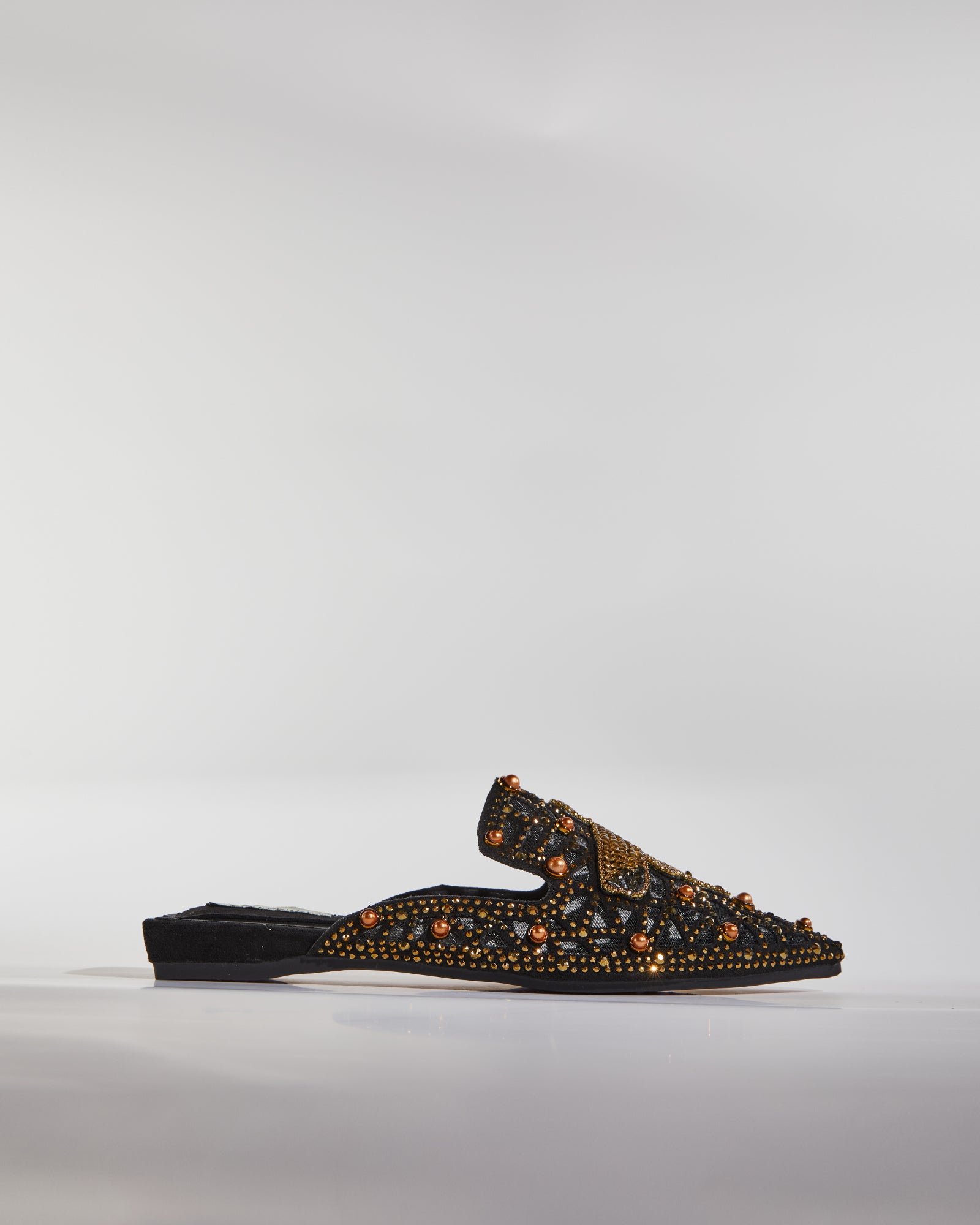 Greta Crane Gilded Embellished Slippers In Black