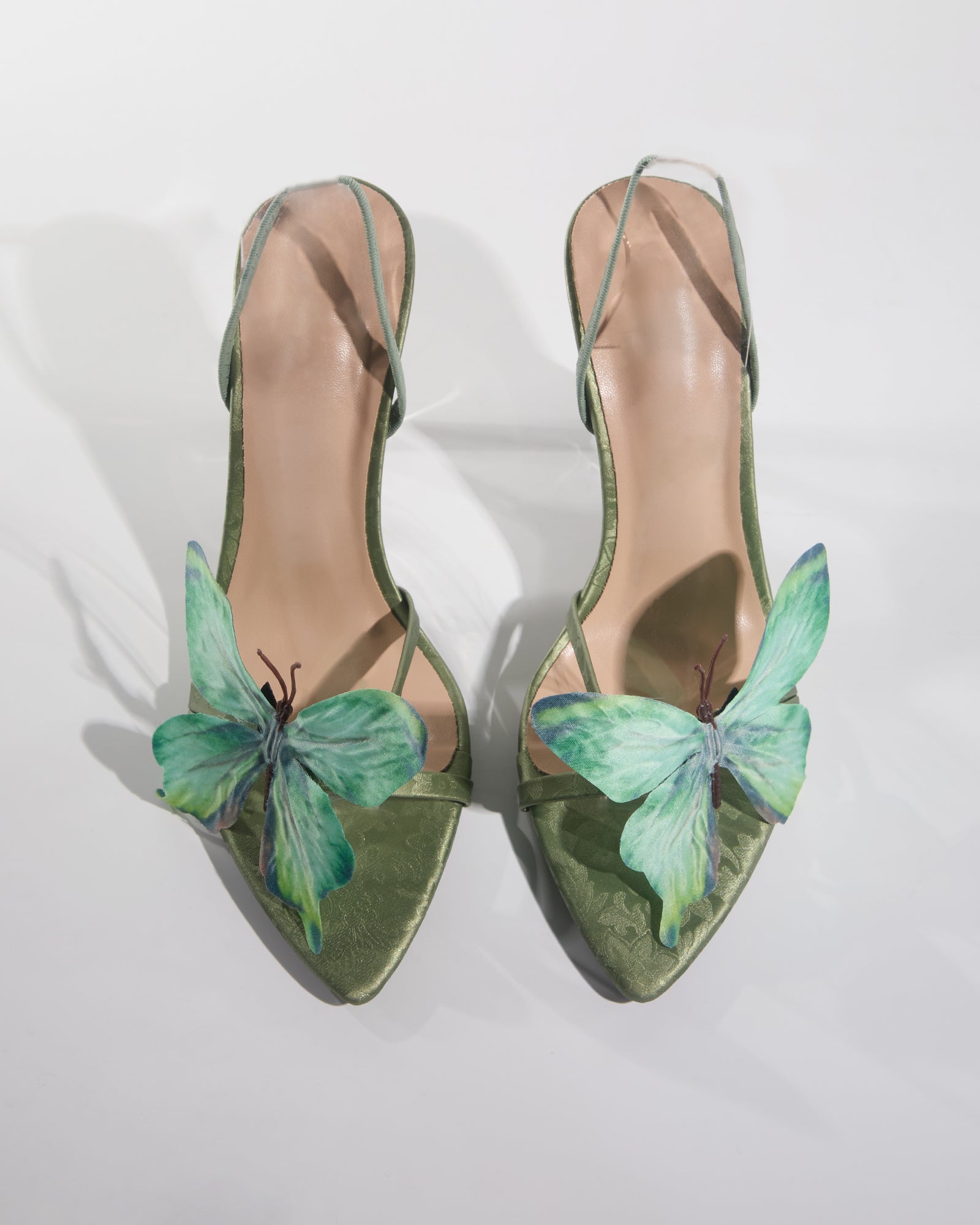 Step into enchanting style with our Io Butterfly Slingback Sandals in Green. These eye-catching sandals feature delicate butterfly details that transform ordinary steps into graceful movements. The comfortable slingback design ensures all-day wearability while the vibrant green hue adds a refreshing pop of color to any outfit. Perfect for making a statement whether paired with summer dresses or casual denim.