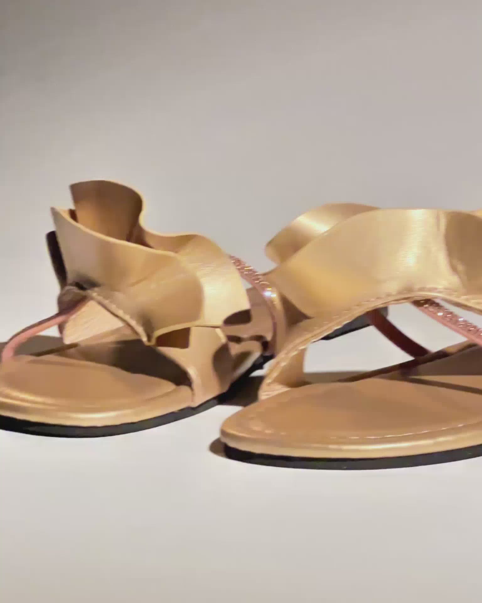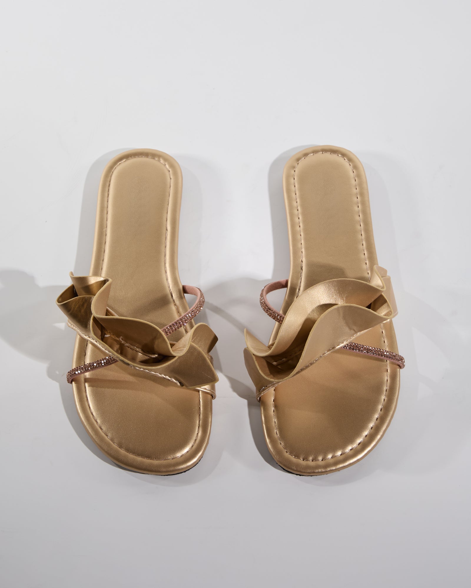 Indulge in luxury and style with our Tiana Ruffle Slippers in Gold. These beautiful slippers feature delicate ruffles and a sleek gold finish, adding a touch of elegance to any outfit. Treat yourself or someone special with these must-have slippers.