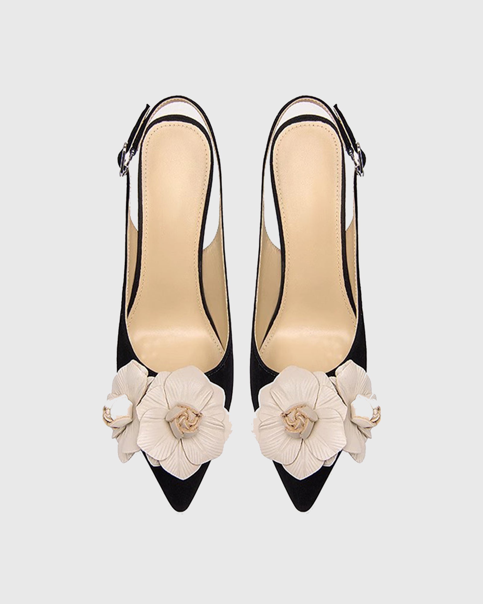 Elevate any outfit with our Yasmin Twin Flower Velvet Slingback Pumps. Made from luxurious velvet, these pumps feature a unique twin flower design for a touch of elegance. The slingback strap adds stability and comfort, making these pumps perfect for any occasion. You'll feel confident and stylish in every step!