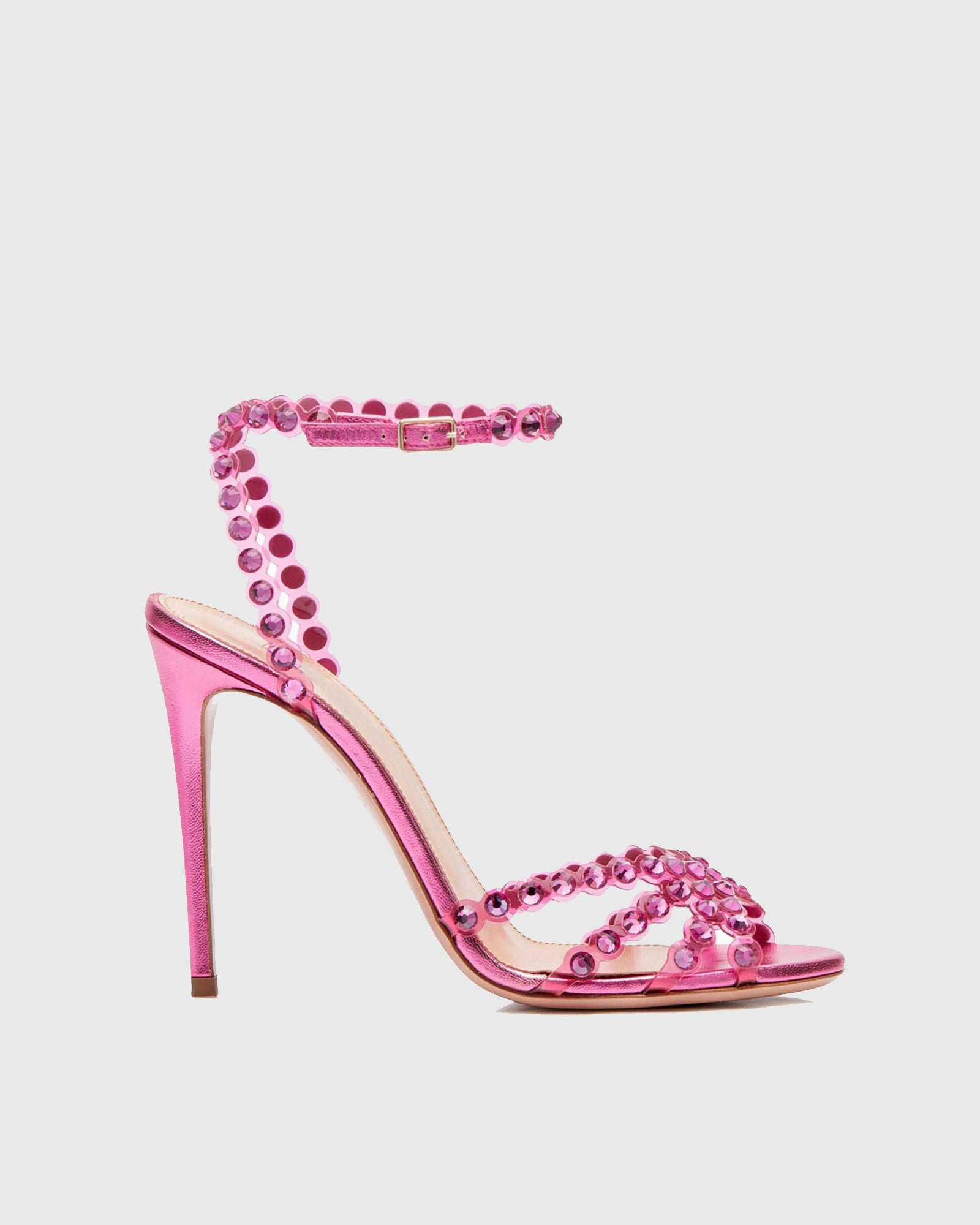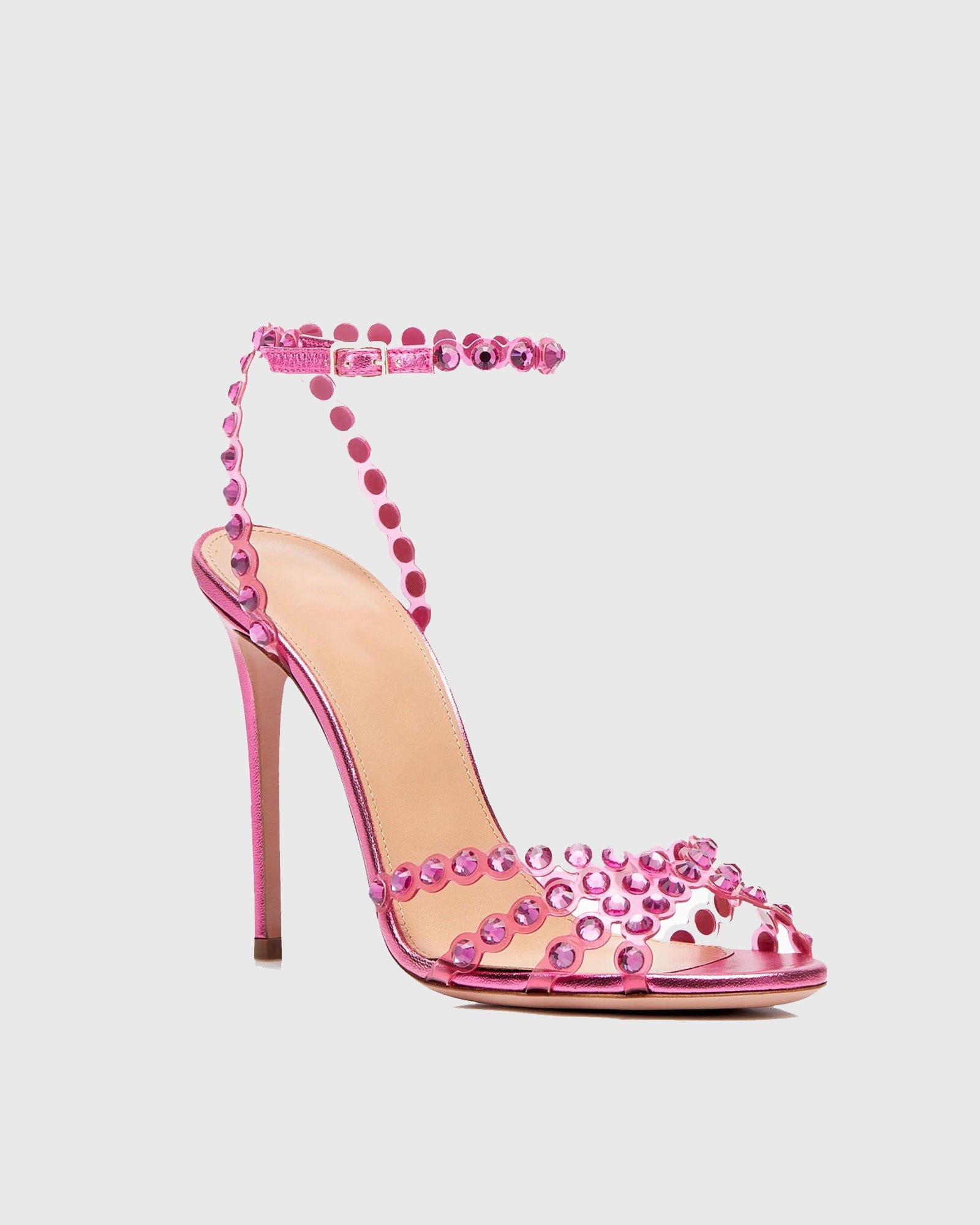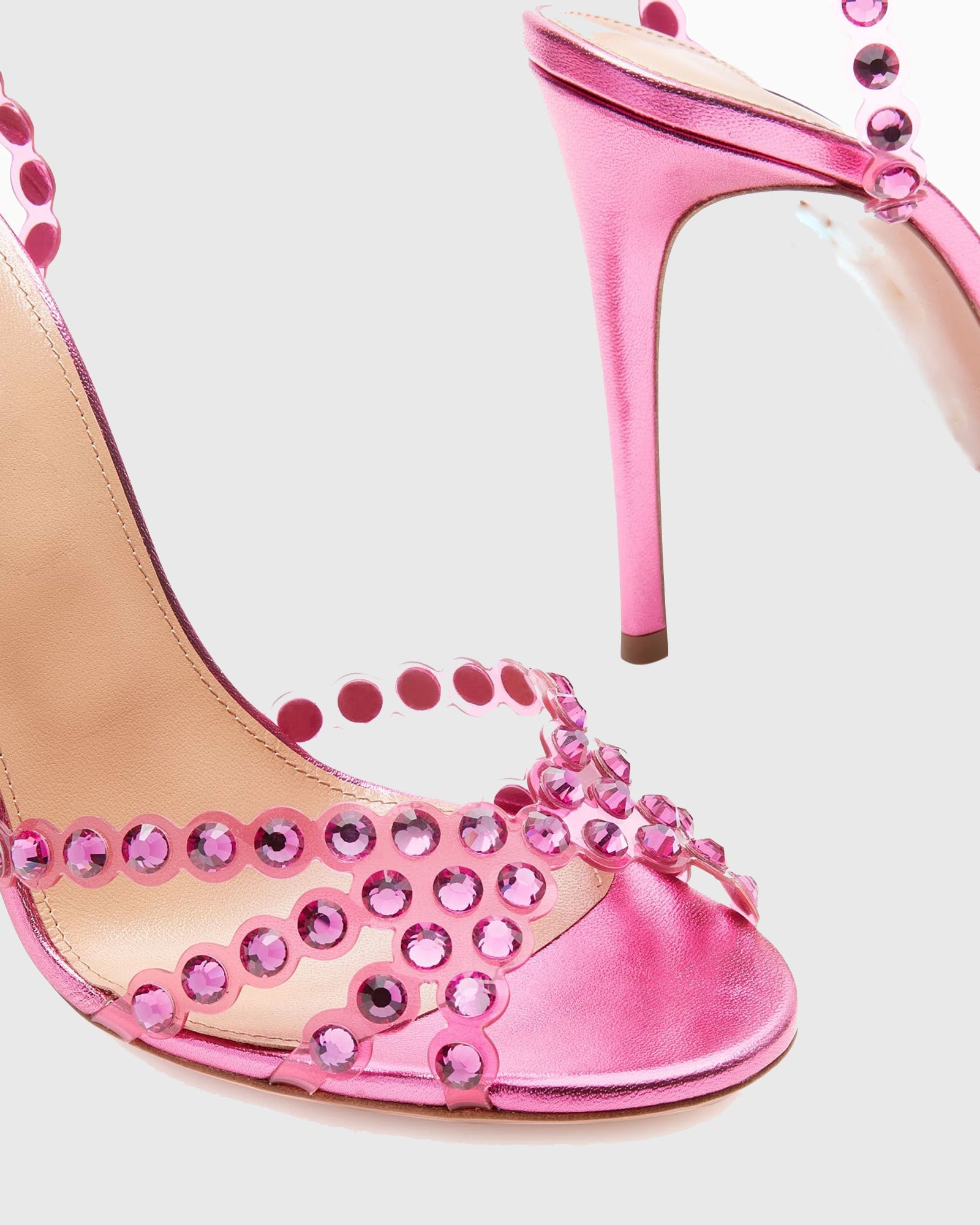 Cameo Rhinestone Embellished PVC Strap Sandals In Hot Pink