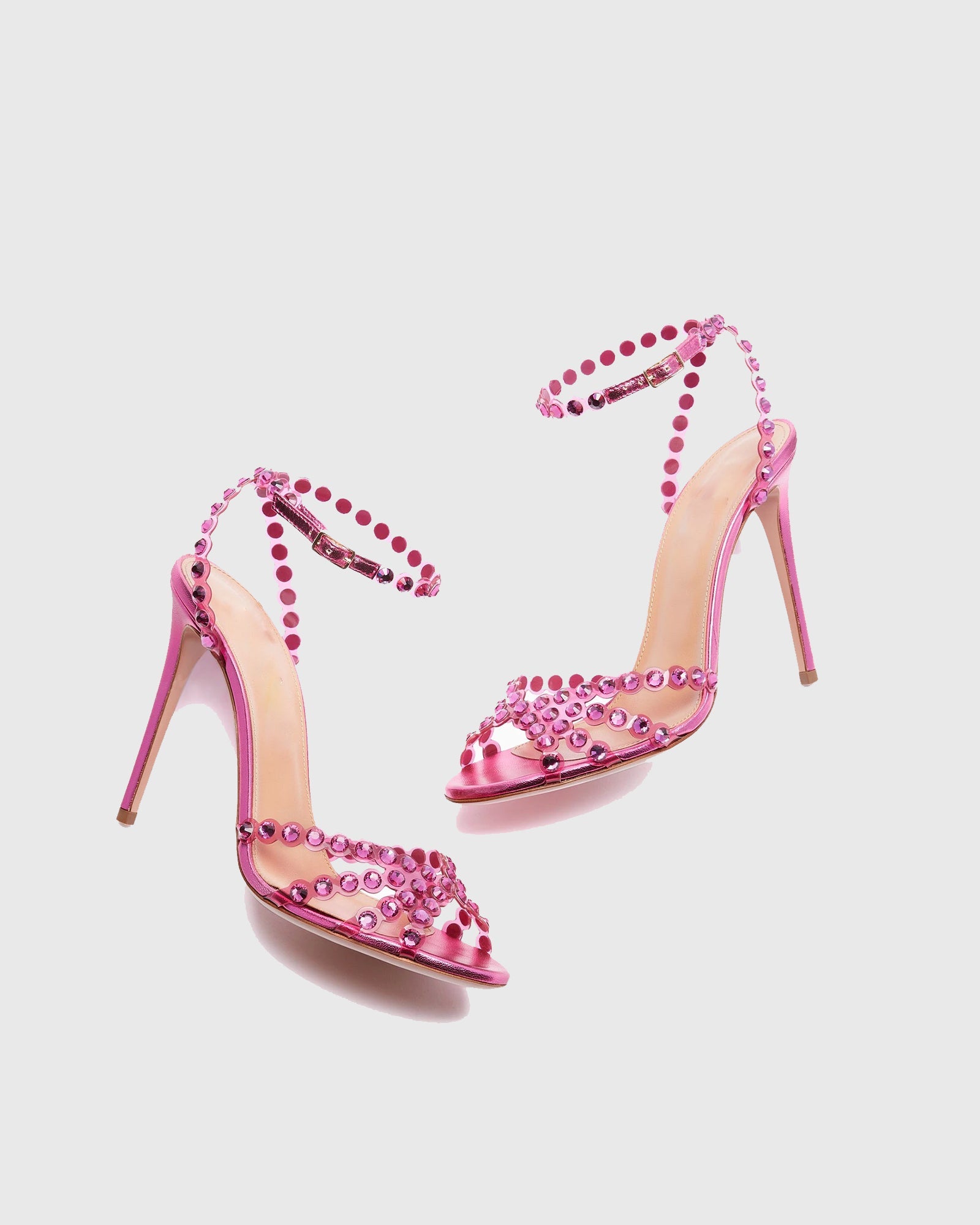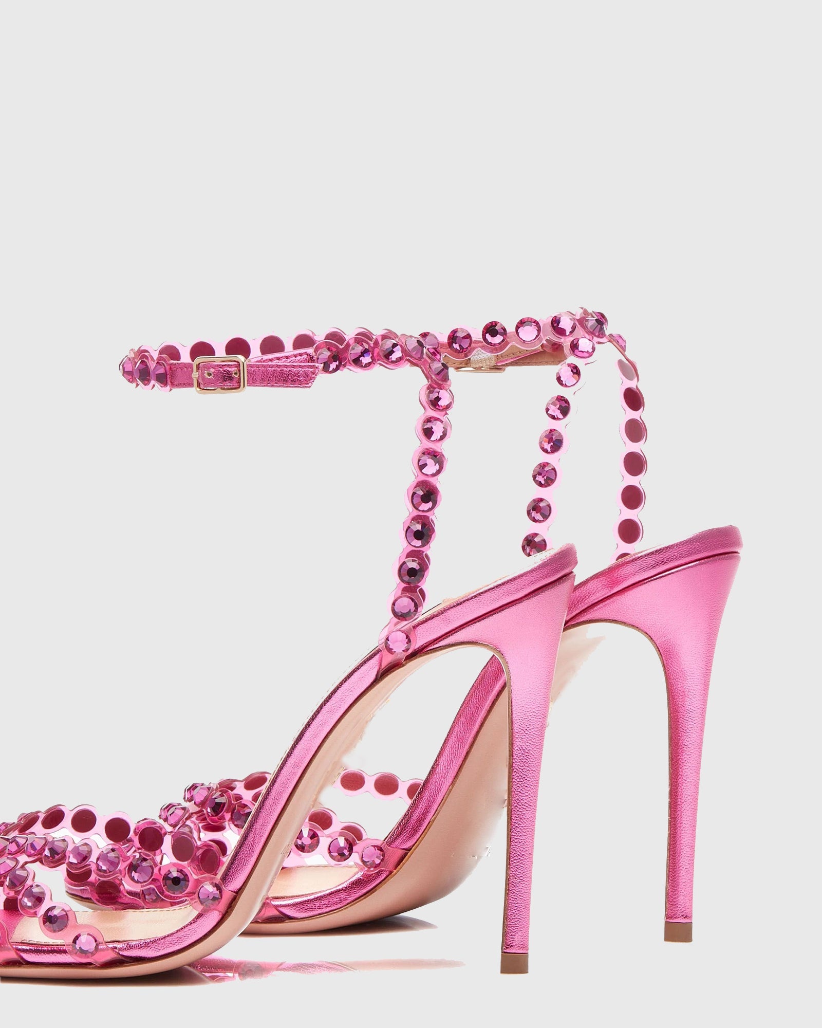 Add a touch of glamour to your shoe collection with our Cameo Rhinestone Embellished PVC Strap Sandals In Hot Pink! Perfect for any occasion, the Pink PVC straps and sparkling rhinestone embellishments make these sandals a must-have for any fashion-forward look. Elevate your style and make a statement with these sandals today!