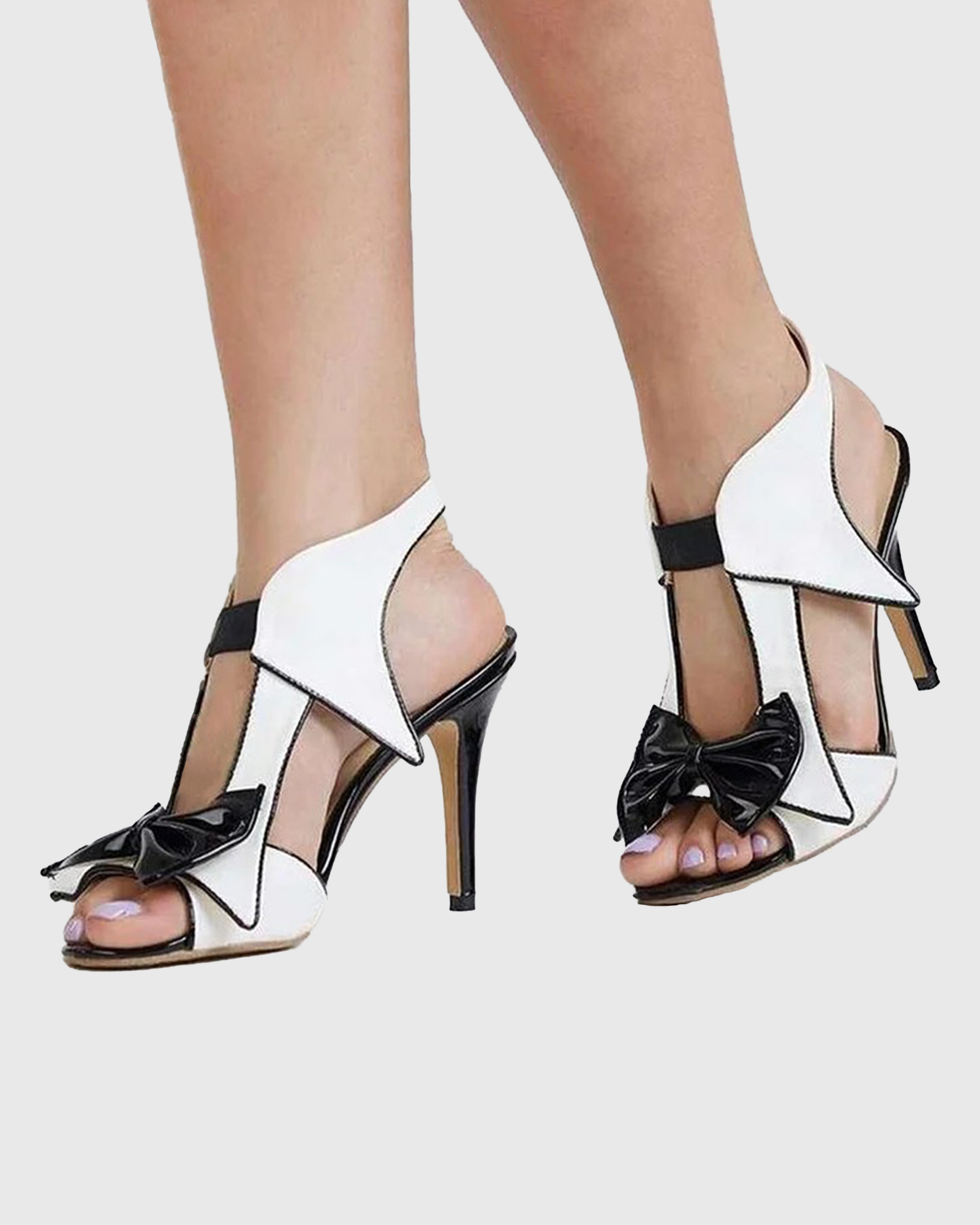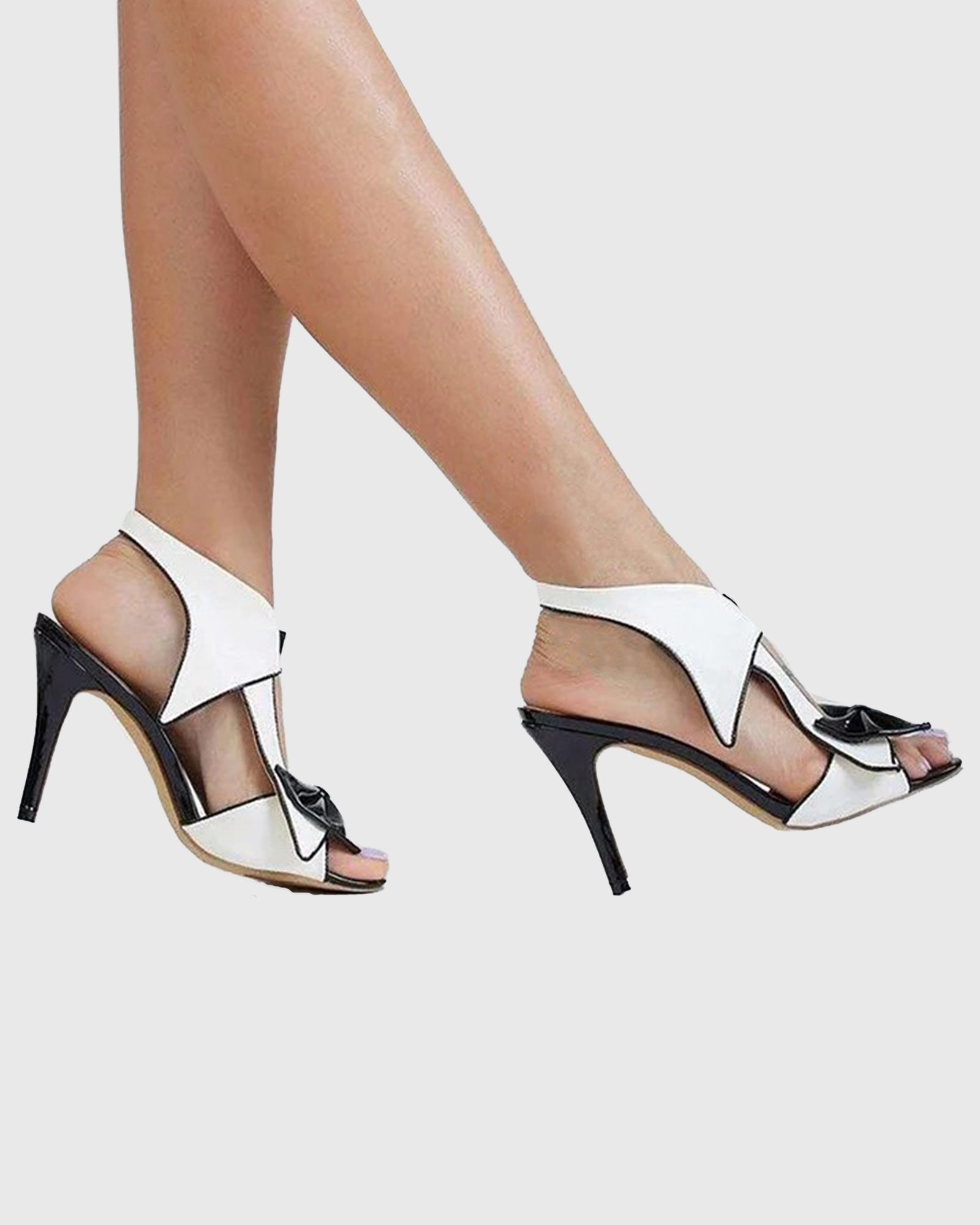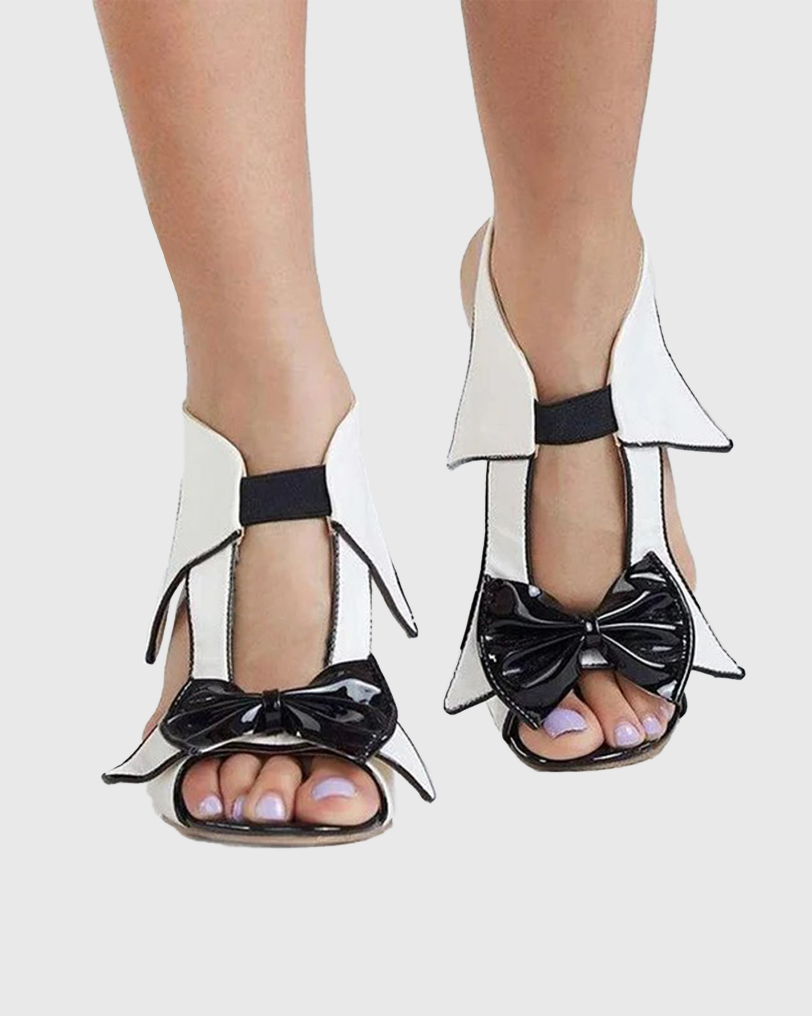 Earleen Splicing Bow Sandals In Black & White