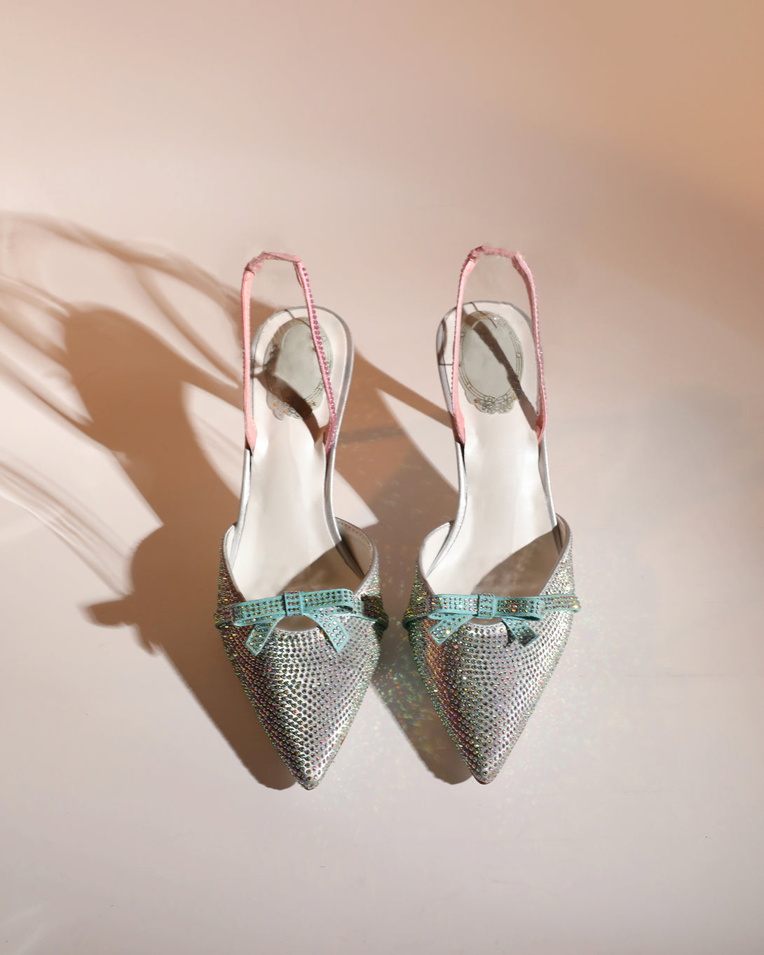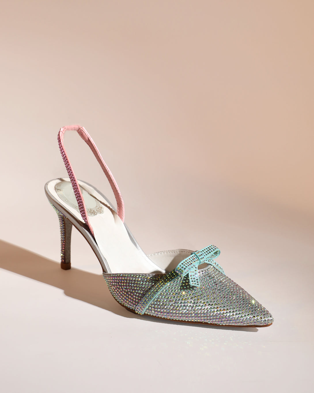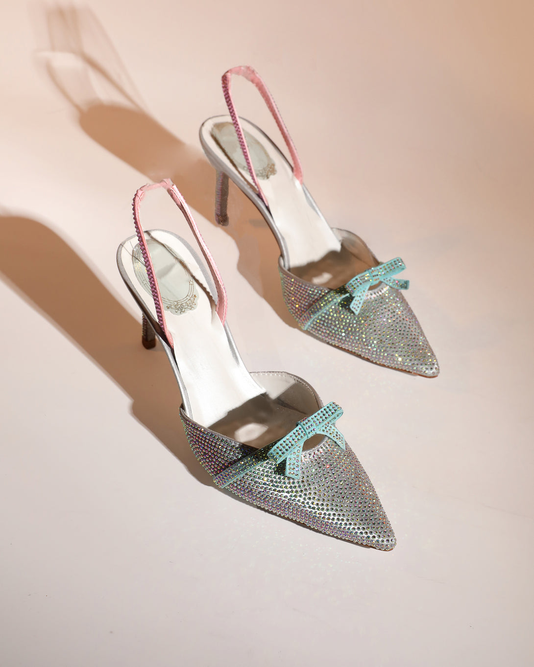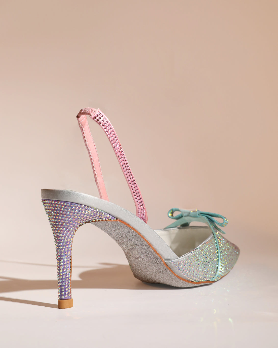Elevate your evening look with the Easton Rhinestone Slingback Pumps in Silver. These stunning heels feature shimmering rhinestone embellishments that catch the light beautifully, creating an eye-catching sparkle with every step. The secure slingback design ensures a comfortable, adjustable fit throughout the night, while the sleek silver finish pairs effortlessly with cocktail dresses, formal gowns, or even elevated casual wear. Perfect for weddings, galas, or any occasion where you want to make a memorable impression. Step into sophistication and let these glamorous pumps be your statement piece.