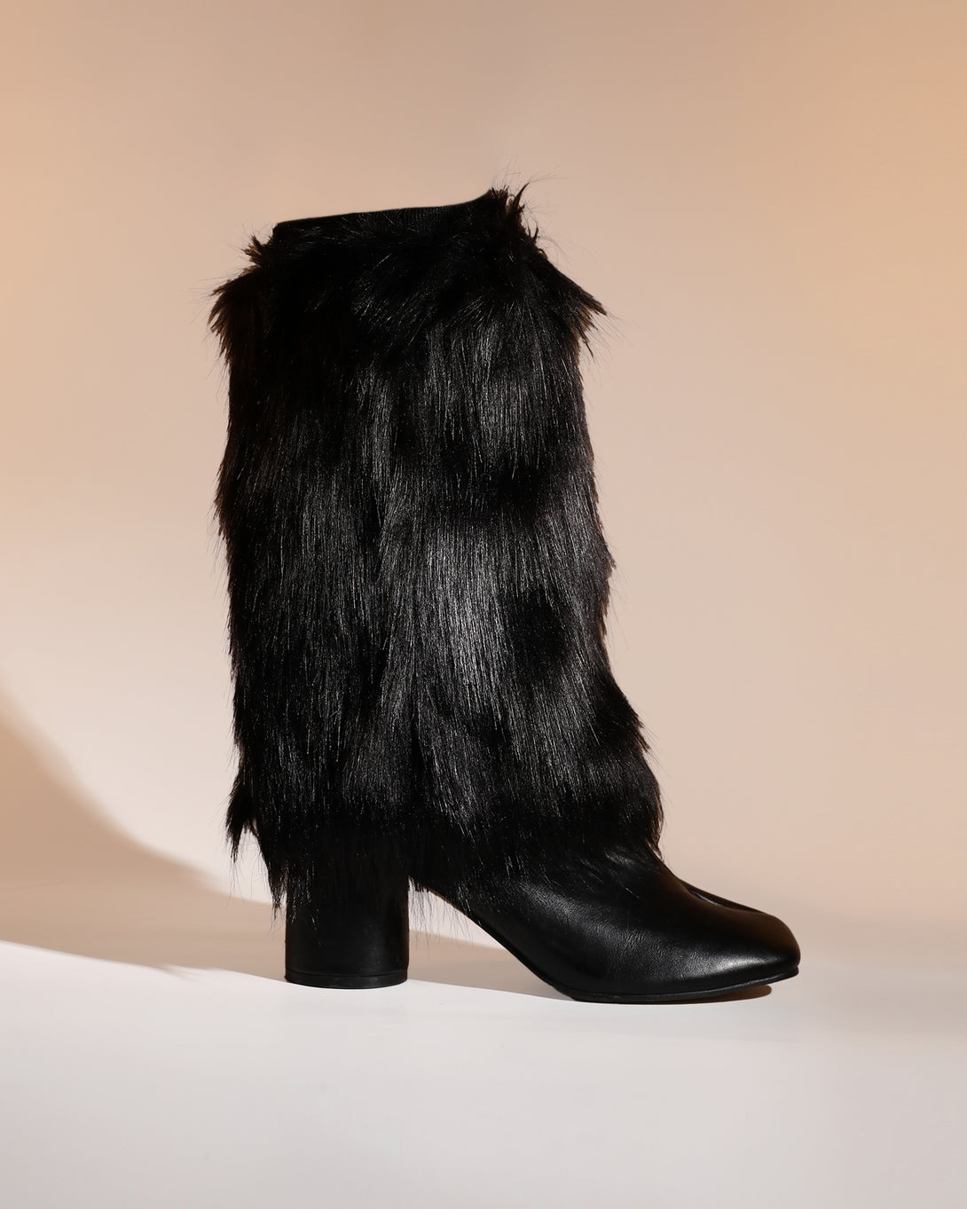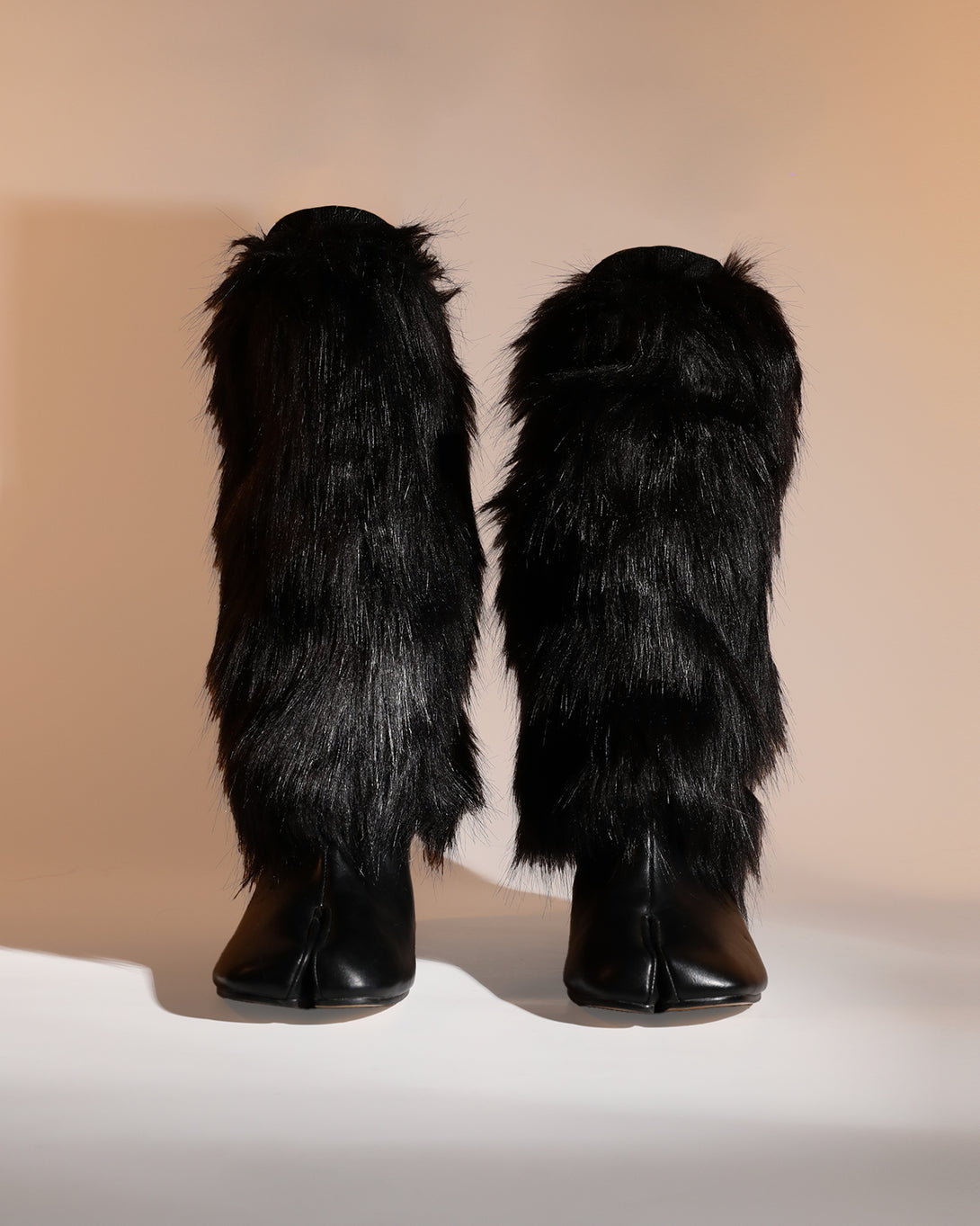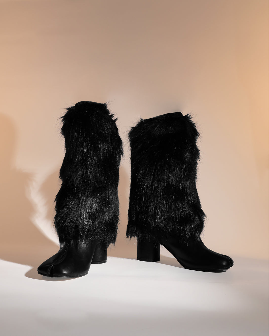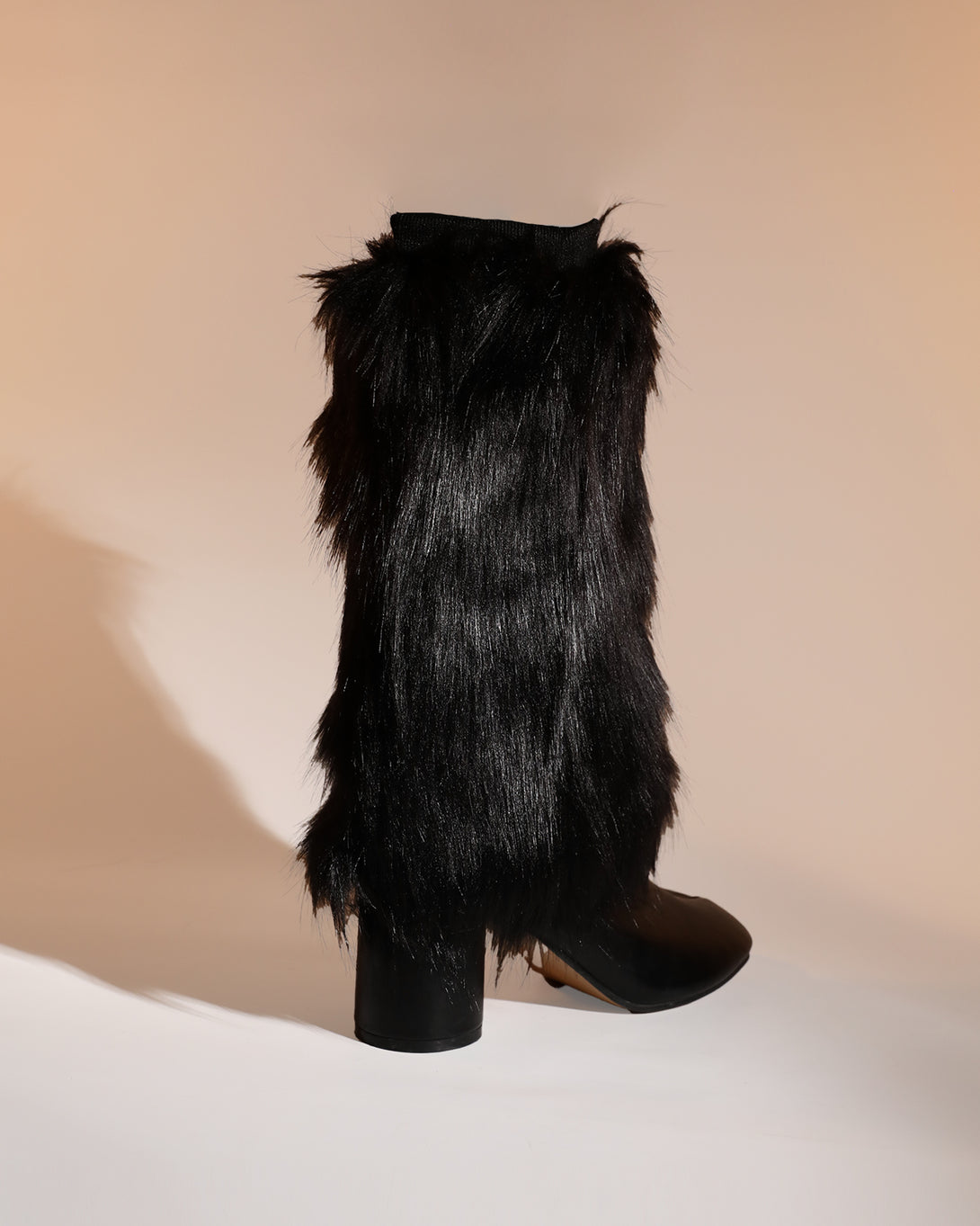 Elevate your winter style with these luxurious faux fur boot covers in sleek black. Designed to slip effortlessly over your favorite boots, they instantly transform your look with plush texture and sophisticated appeal. Perfect for adding warmth and glamour to any cold-weather outfit, these covers deliver high-end aesthetics without the premium price tag. Whether you're heading to the office or out for an evening, they're the quick way to refresh your footwear and make a statement. Durable faux fur construction ensures lasting beauty through countless wears.