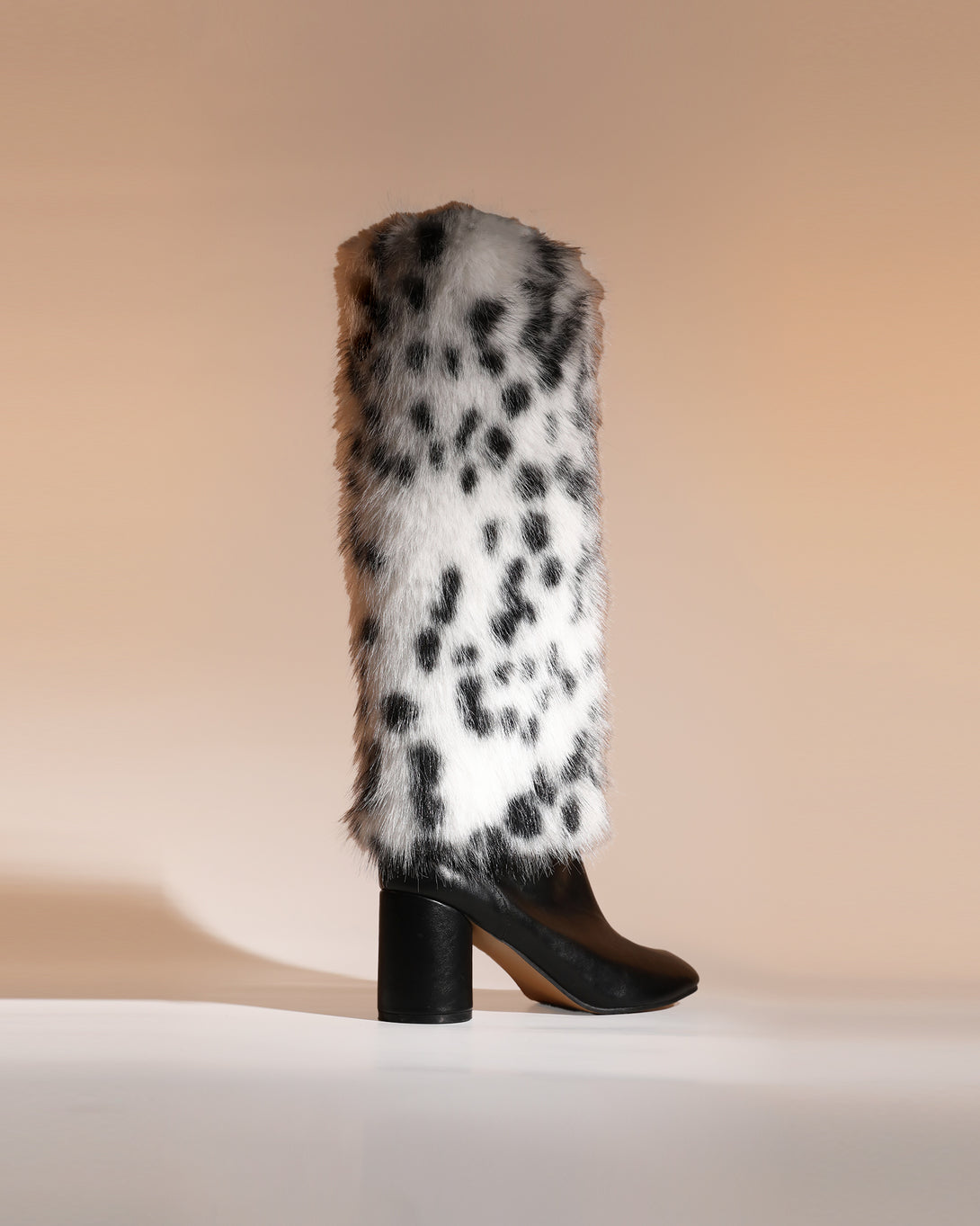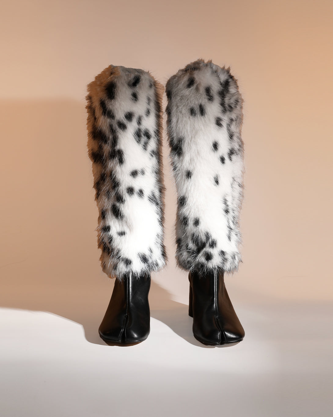 Transform your winter boots into a fashion statement with these luxurious faux fur boot covers in striking snow leopard print. Designed to slip over your favorite footwear, they instantly elevate any cold-weather outfit while providing an extra layer of warmth and texture. The plush faux fur mimics the look of genuine fur without the ethical concerns, making them a chic and conscious choice. Perfect for adding glamorous flair to casual or dressy ensembles, these versatile covers are the ultimate accessory for fashion-forward winters. Slip them on, stand out, and embrace the wild side of seasonal style.