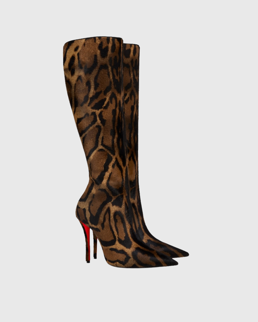 Step out in style with the Tersa Leopard Print Knee High Boots in Brown. These bold boots combine a striking leopard pattern with a flattering knee-high silhouette, perfect for elevating any outfit. Crafted to offer both comfort and a confident fit, they effortlessly add a touch of wild sophistication to your look. Ideal for those who want to make a statement, these boots pair beautifully with skirts, dresses, or slim jeans for a chic, trendy edge.