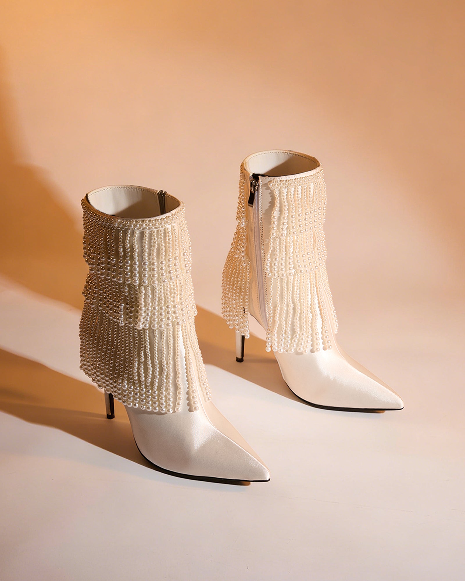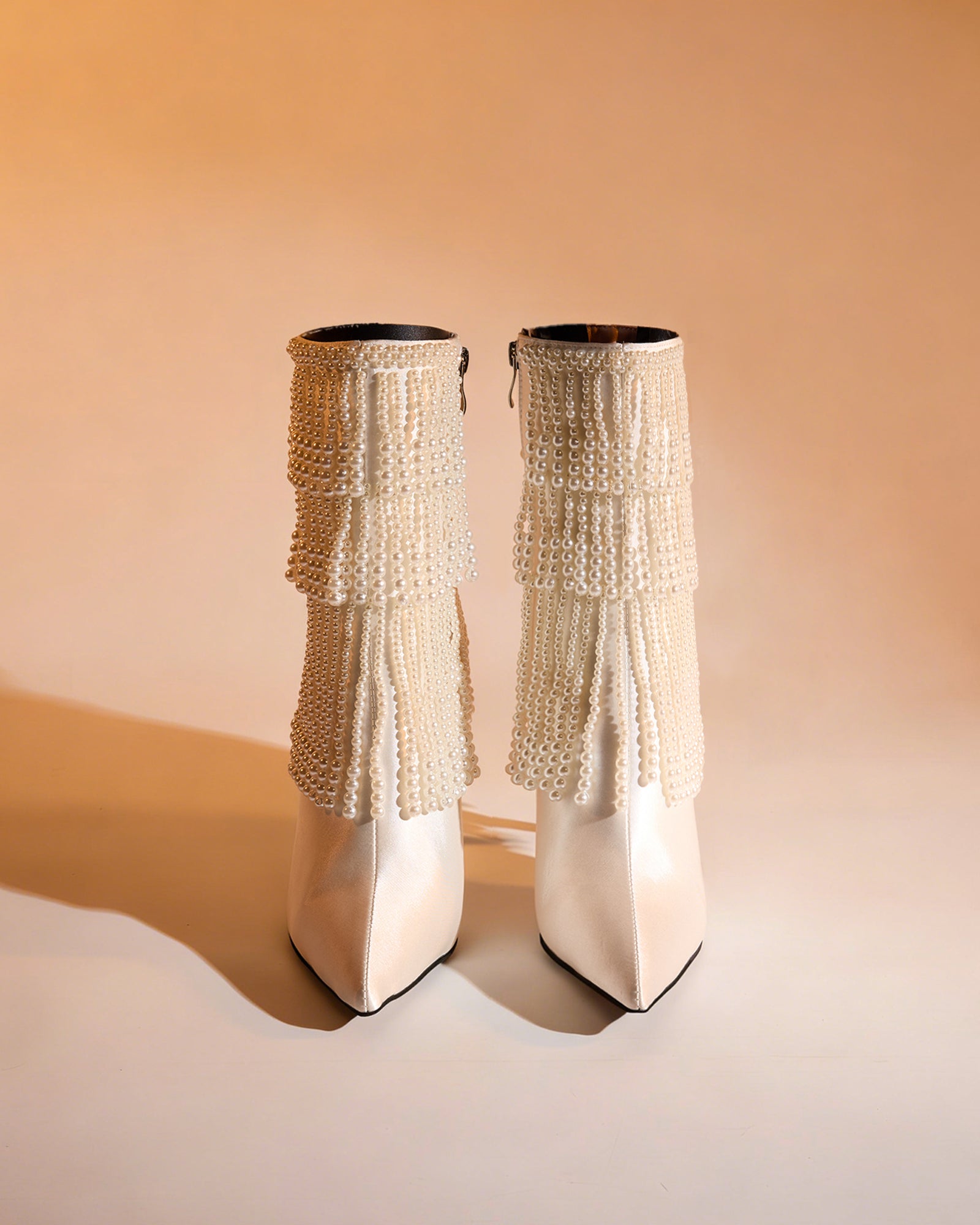 Step into effortless elegance with these Gae Pearl Fringe Ankle Boots. Featuring delicate pearl-adorned fringe detailing, these boots deliver a sophisticated touch to any outfit. The ankle-height silhouette offers versatile styling options, from casual denim to evening wear. Crafted for comfort and style, they're the perfect statement piece for those seeking understated luxury with a hint of playful texture.