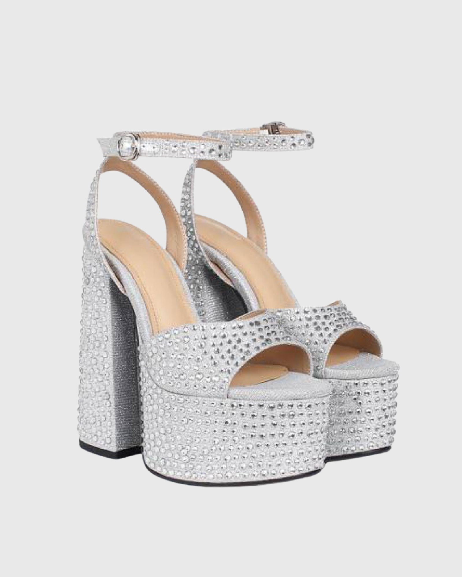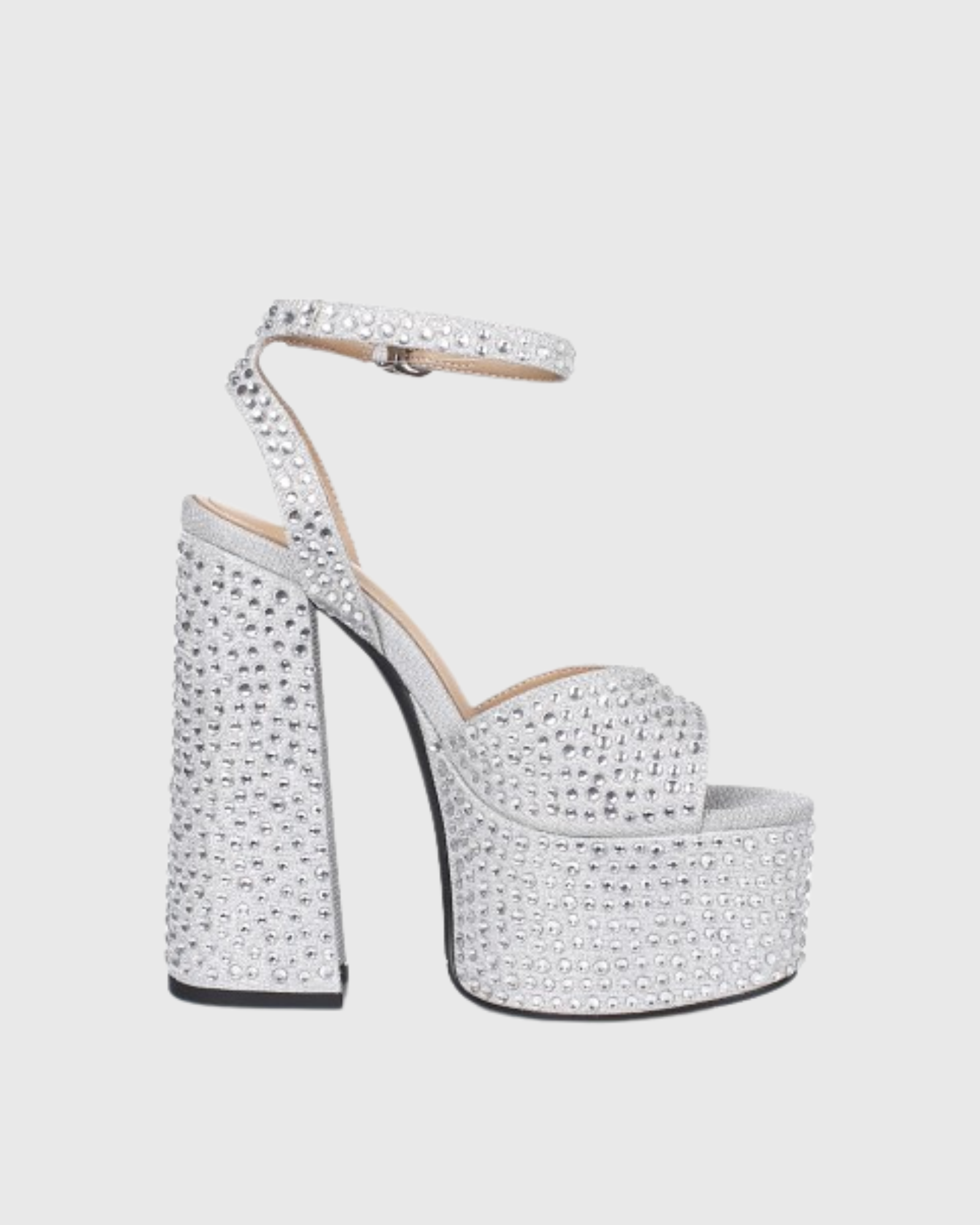 Ilenia Rhinestone Strap Platform Sandals In Sliver