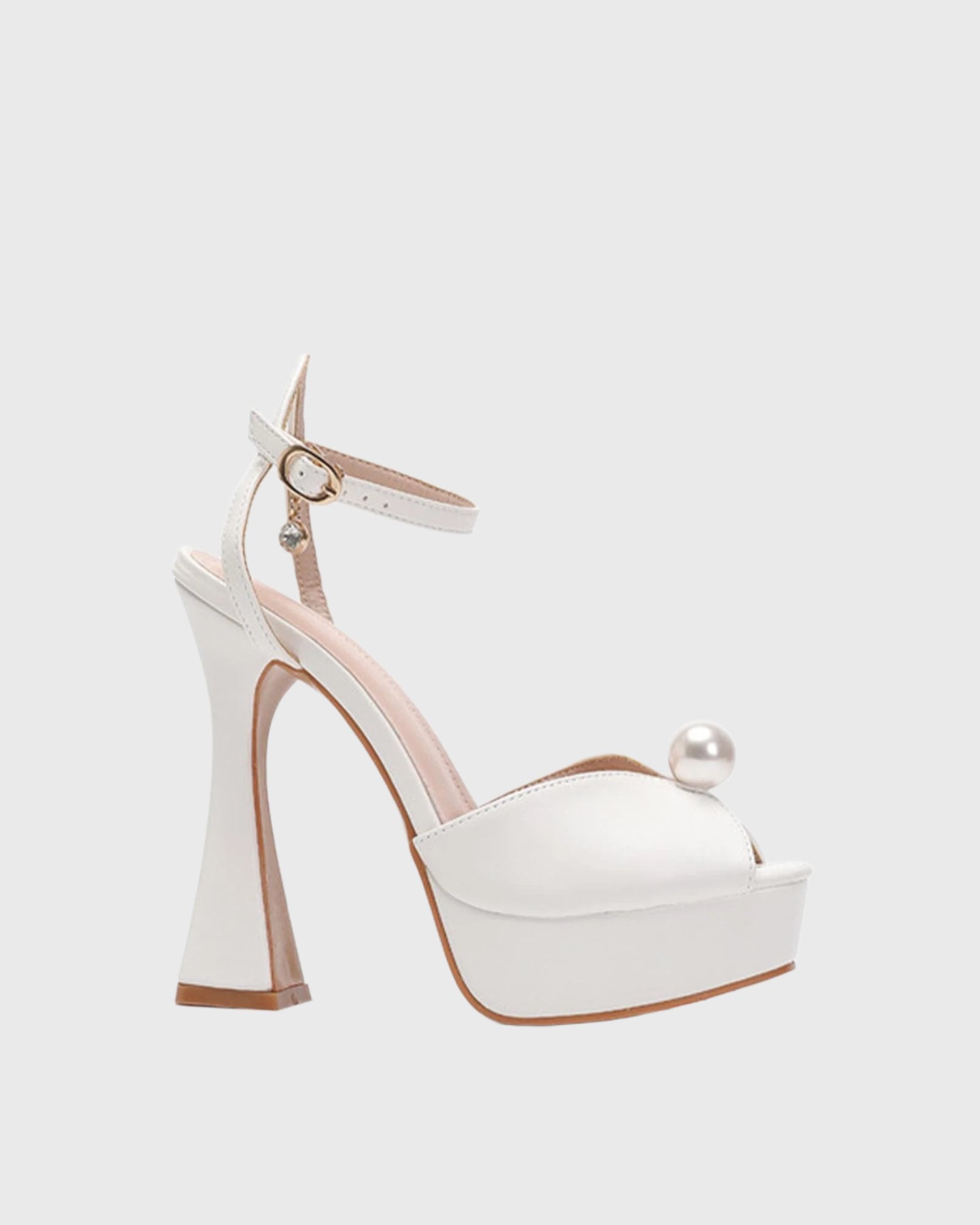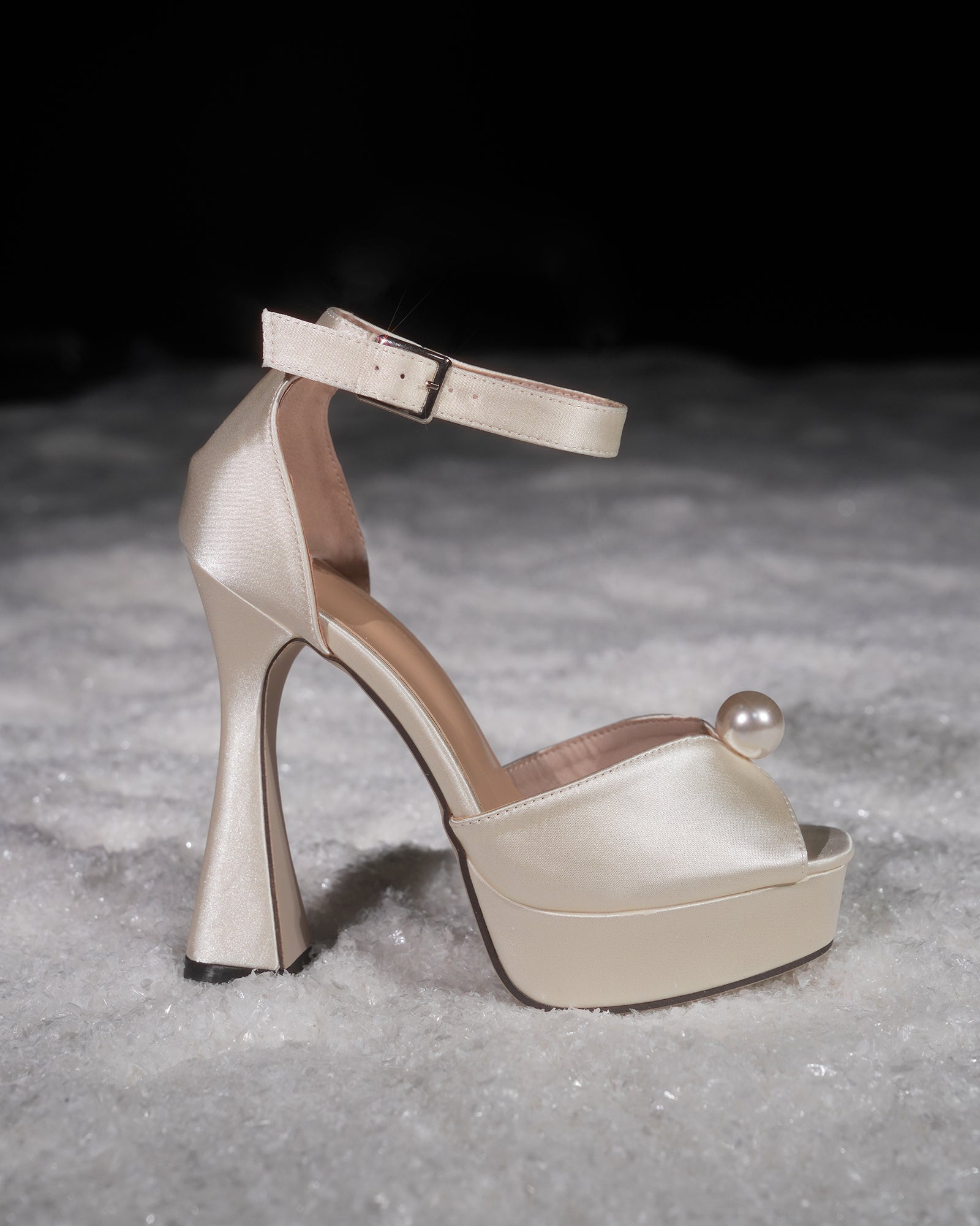 Step into luxury with our Liviana Pearl Satin Strap Platform Sandals! These stunning white sandals feature a delicate pearl strap and a comfortable platform for a stylish and comfortable look. Elevate any outfit with these sandals that exude elegance and sophistication.