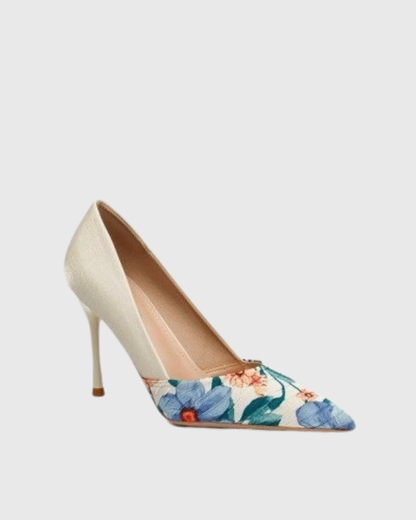 Elevate your style with the Itala Floral Print Splicing Pumps in Ivory. Featuring a delicate floral print and elegant splicing design, these pumps add a refined, feminine touch to any outfit. The ivory base complements both casual and formal looks, while the comfortable fit ensures you can wear them all day with ease. Perfect for making a graceful statement, these pumps are a must-have addition to your wardrobe.