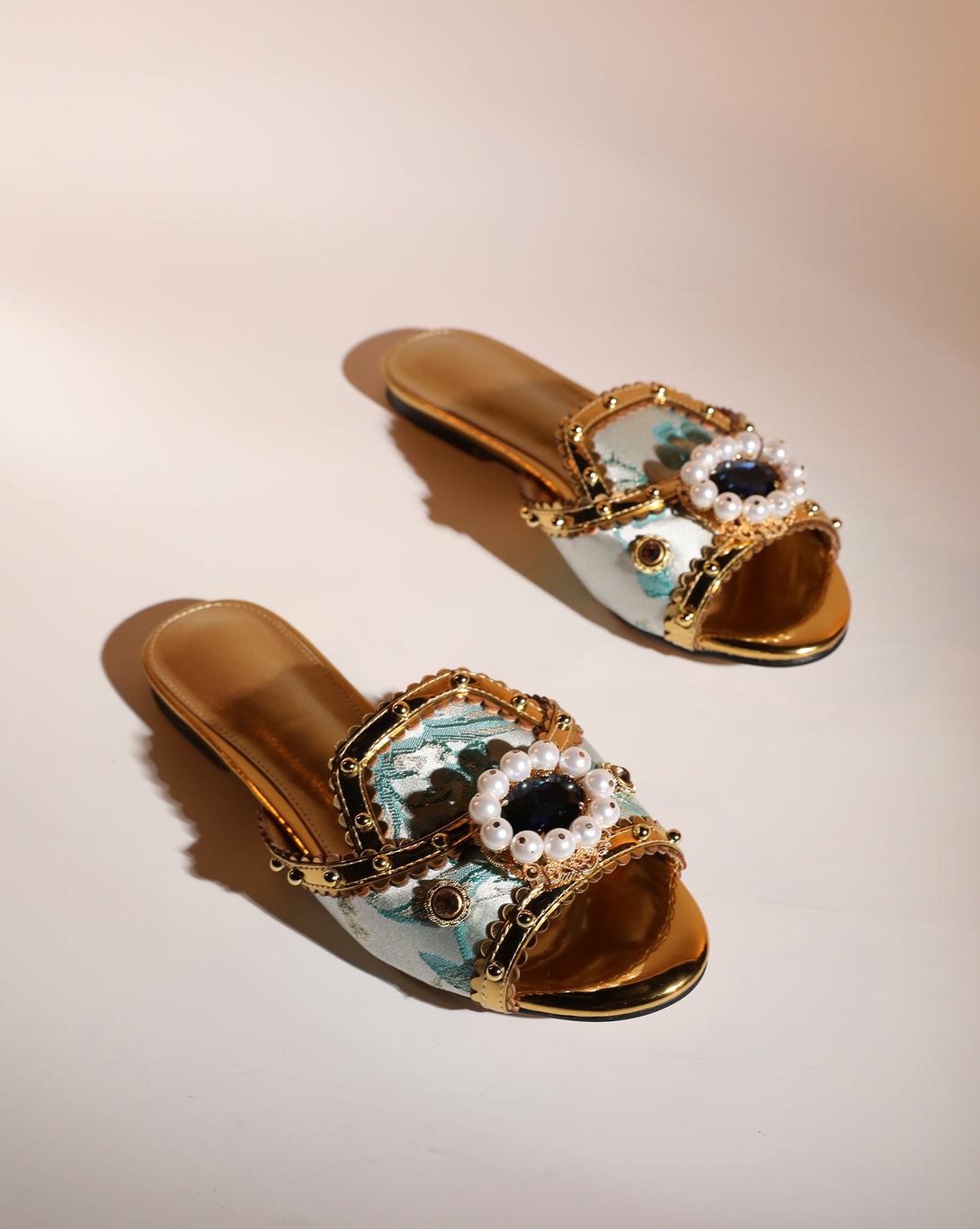 Take your style to the next level with our Jewel Vintage Embellished Slippers In Blue! These gorgeous slippers feature vintage-inspired embellishments that will add a touch of glamour to any outfit. The comfortable fit and versatile color make these slippers perfect for any occasion. Elevate your shoe game with these stunning slippers!