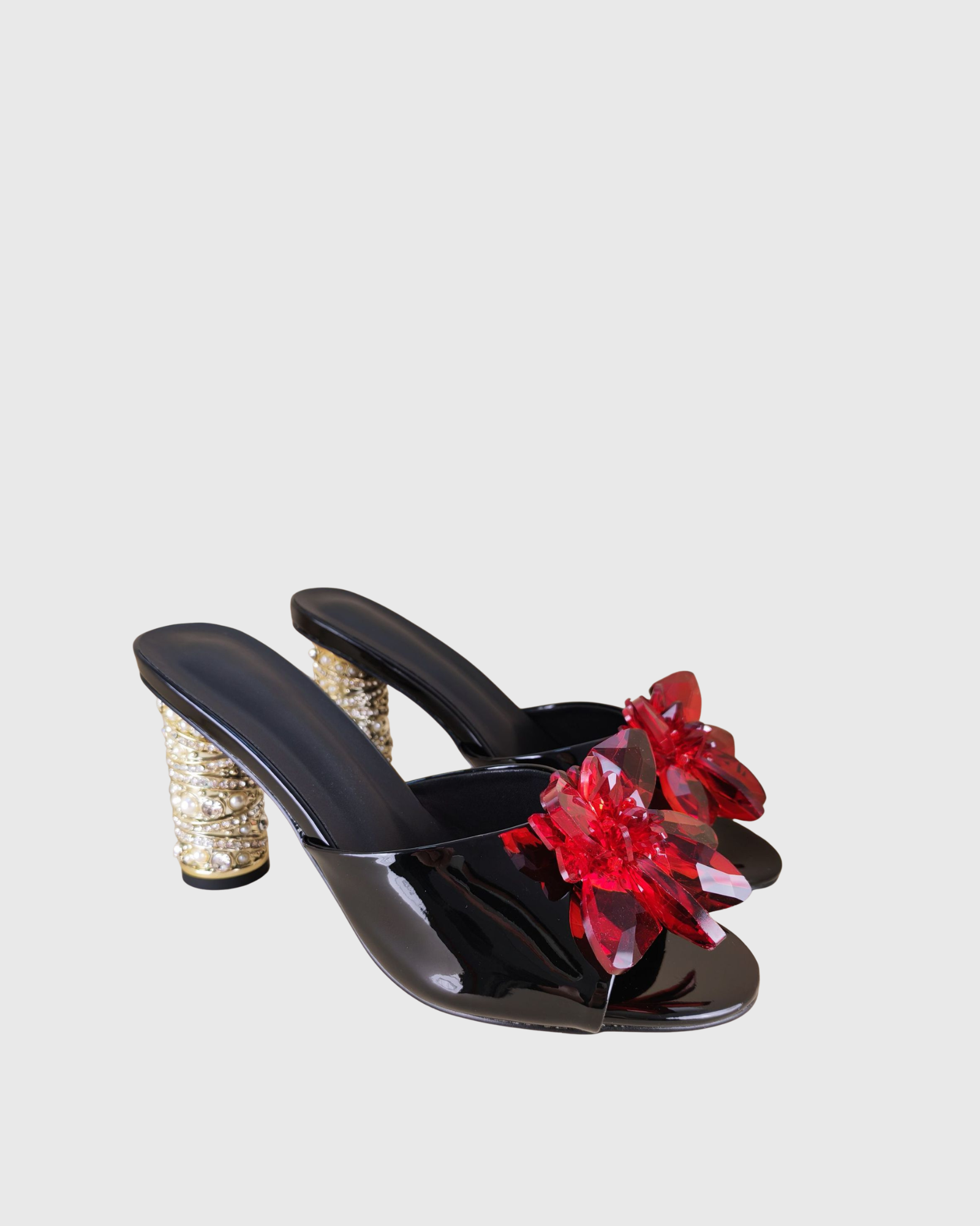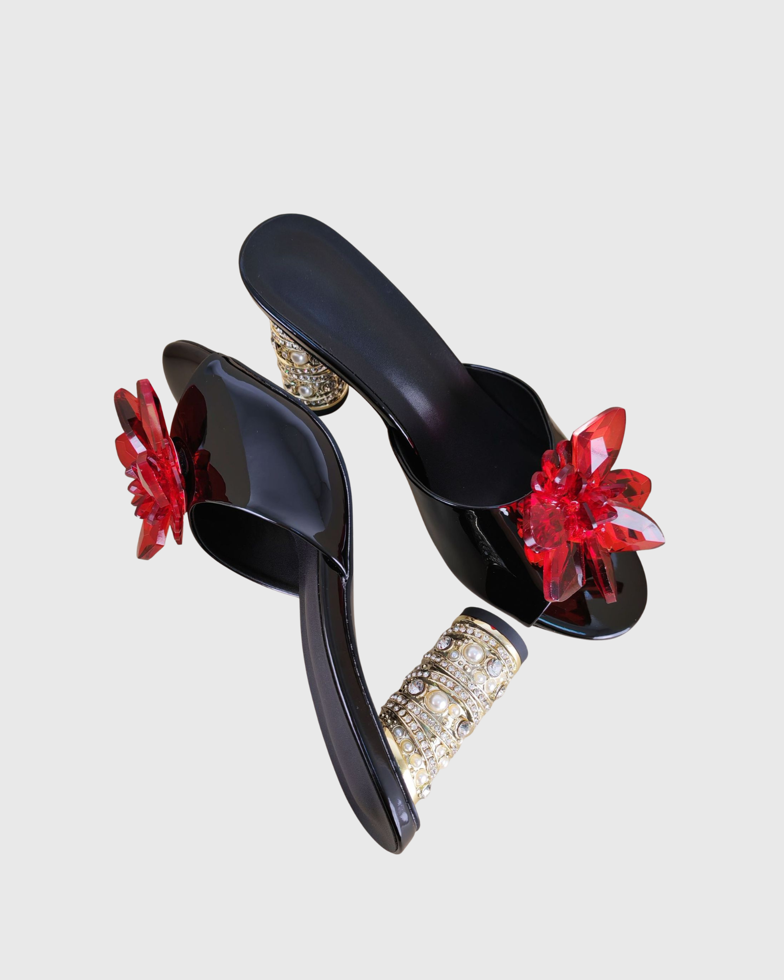Eadric Crystal Flower Mules In Black