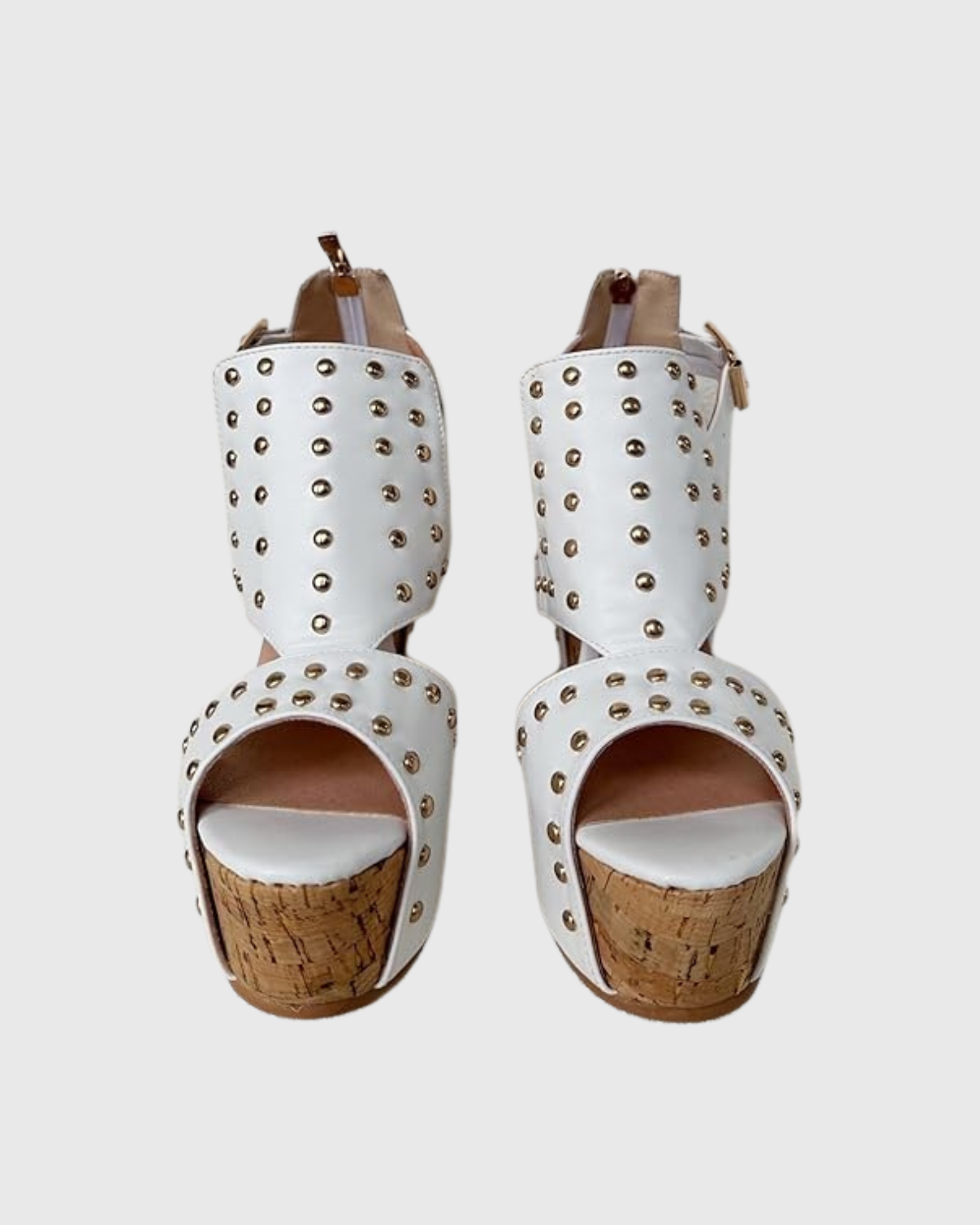 Ebele Studded Buckle Strap Wedge Sandals In White