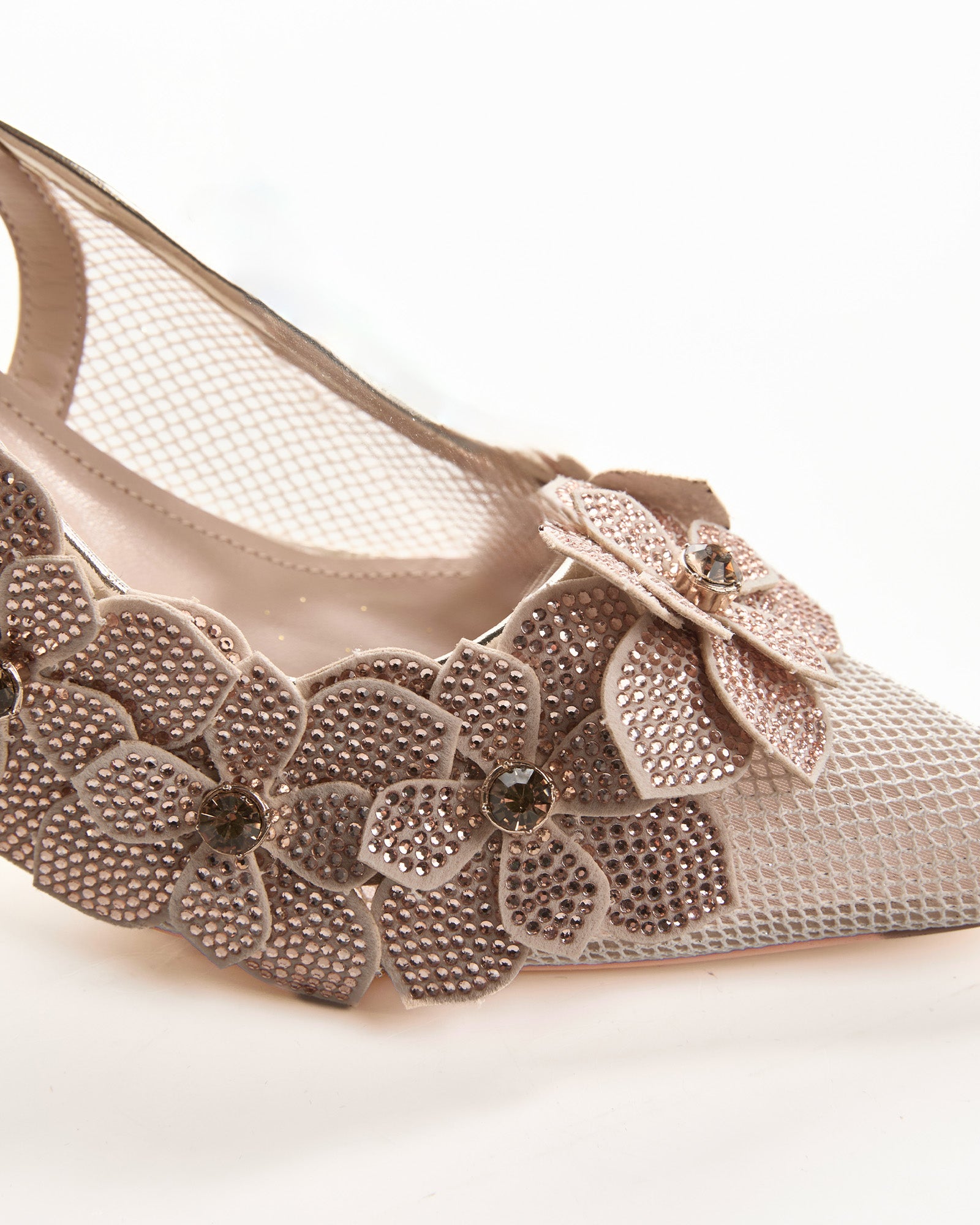 Elevate your style with the Frida Rhinestore Flower Fishnet Pumps. Featuring a delicate fishnet design adorned with sparkling rhinestone flowers, these pumps blend edgy allure with feminine charm. Perfect for making a statement at any event, they provide a confident lift while highlighting your unique fashion sense. Step into elegance and shine with every step.