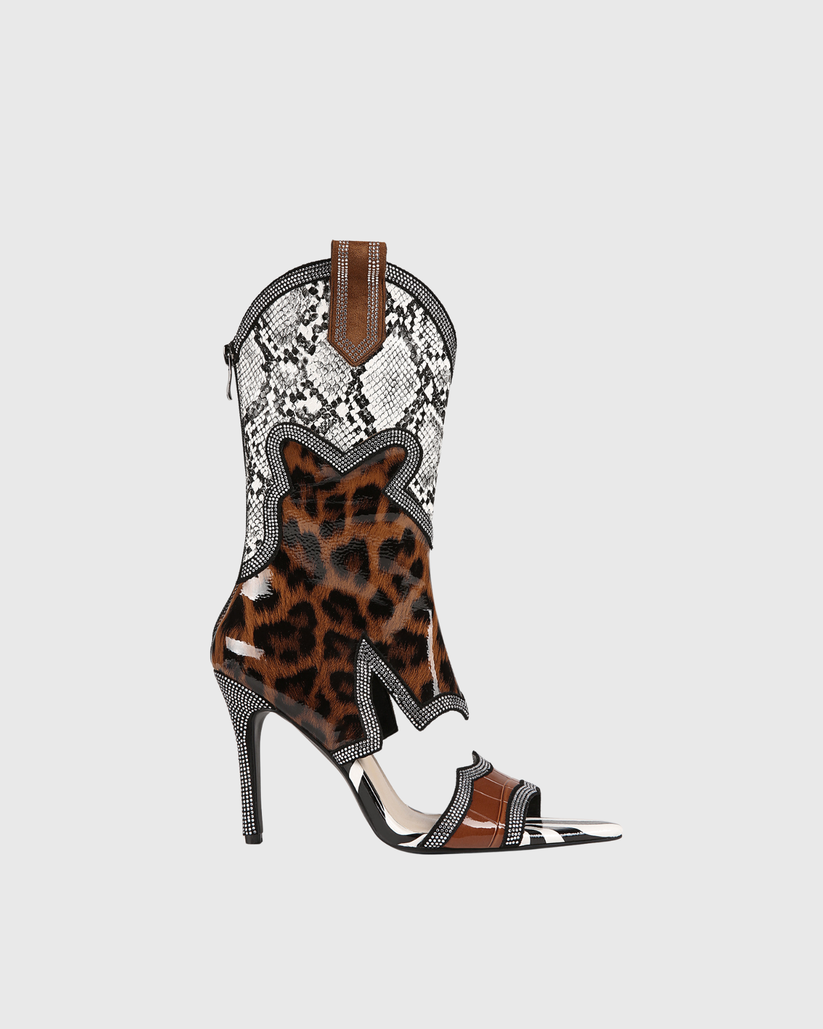 Ortensia Mid Calf Splicing Cowboy Sandals In Leopard & Snake Unleash your inner maverick with the Ortensia Mid Calf Splicing Cowboy Sandals, where wild animal prints collide with rugged Western charm. The captivating leopard and snake pattern fusion creates an unmistakable presence that commands attention, while the mid-calf silhouette offers unexpected styling flexibility across your entire wardrobe. Precision splicing details reveal superior construction quality that justifies the investment. These aren't your average sandals—they're a confidence boost wrapped around your feet. From festival vibes to night-out energy, the Ortensia transforms any outfit into a bold fashion moment. Ready to make your mark