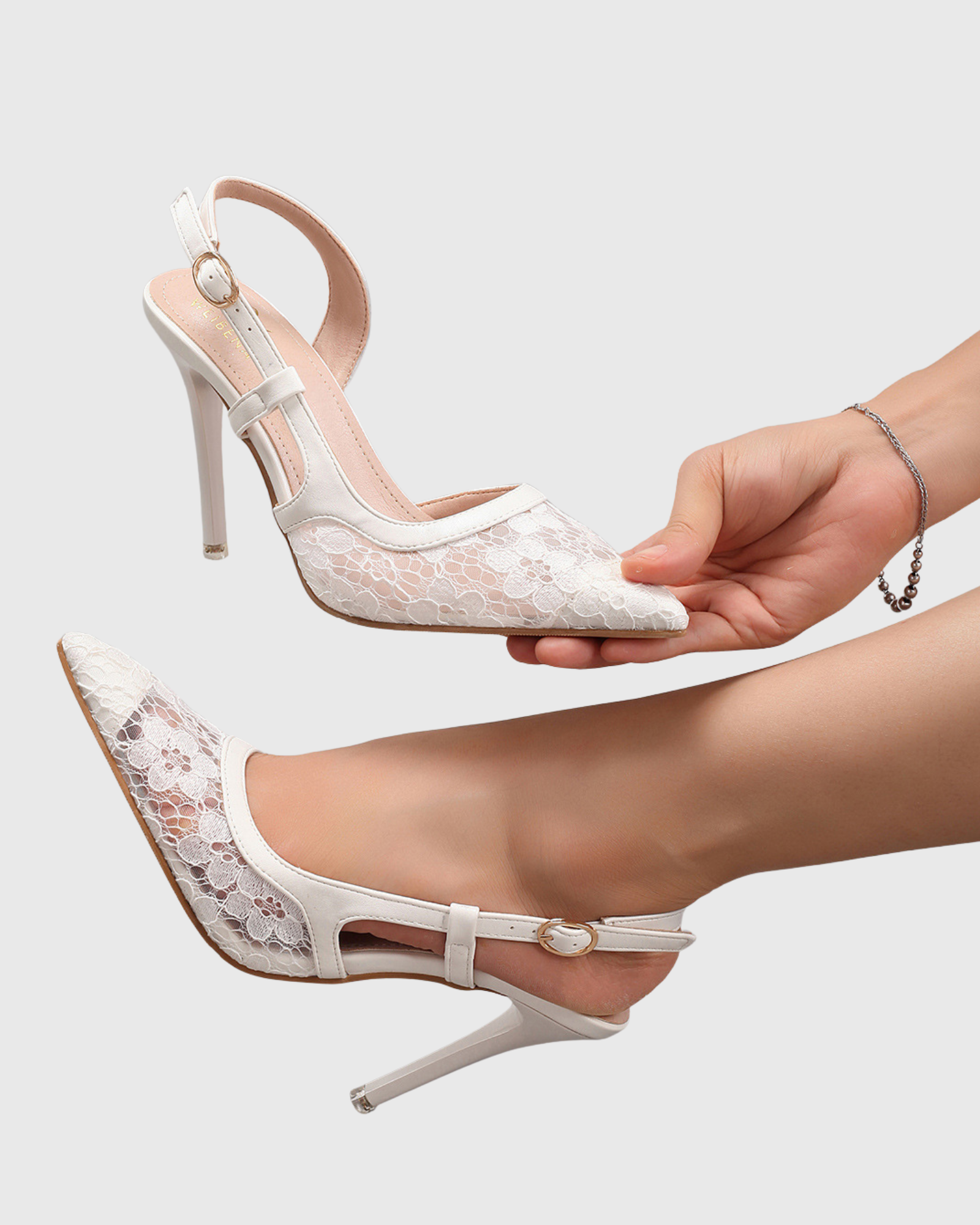 Elevate your style with the Baako Lace Bow Slingback Pumps in White. Featuring delicate lace detailing and a charming bow accent, these pumps combine elegance with a feminine touch. The slingback design ensures a secure, comfortable fit, perfect for all-day wear. Ideal for special occasions or adding sophistication to your everyday look, these pumps bring timeless grace to any outfit.