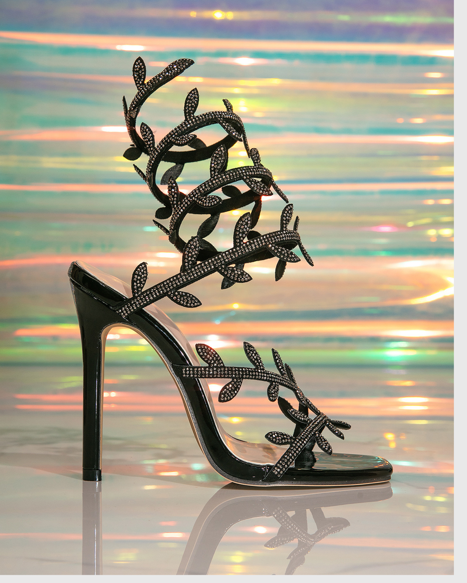 Ealar Rhinestone Leaf Lace Up Sandals In Black