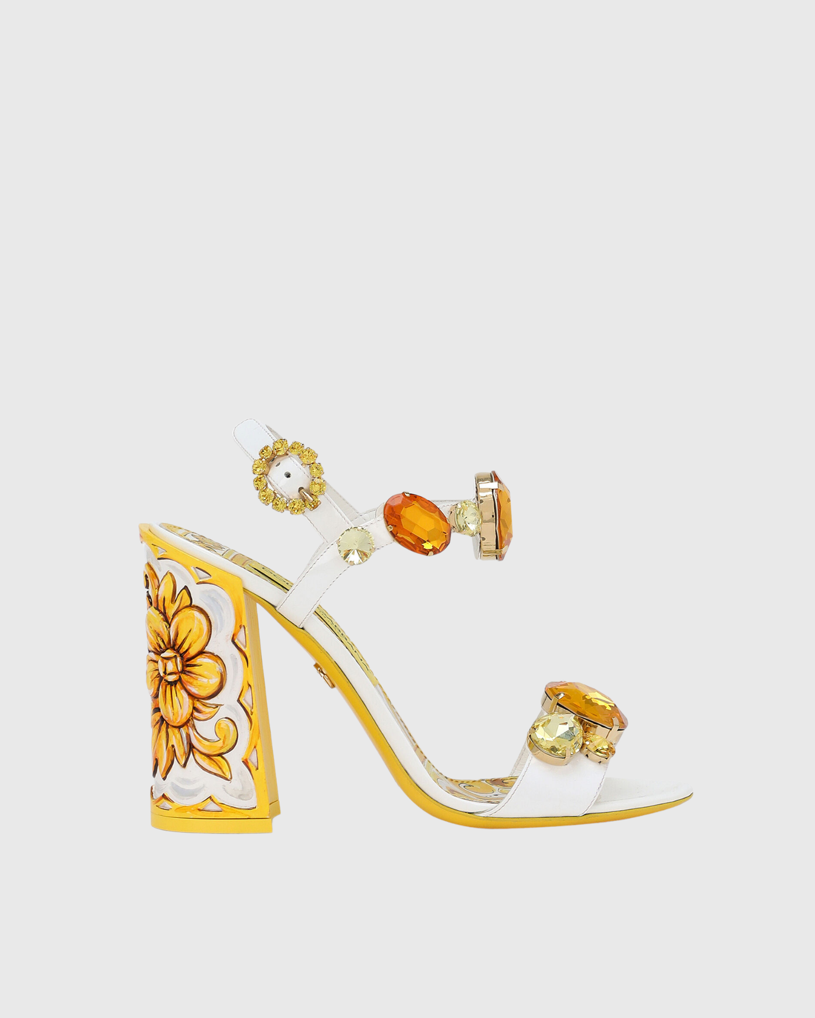 Loreto Flower Print Diamond Strap Sandals In Gold